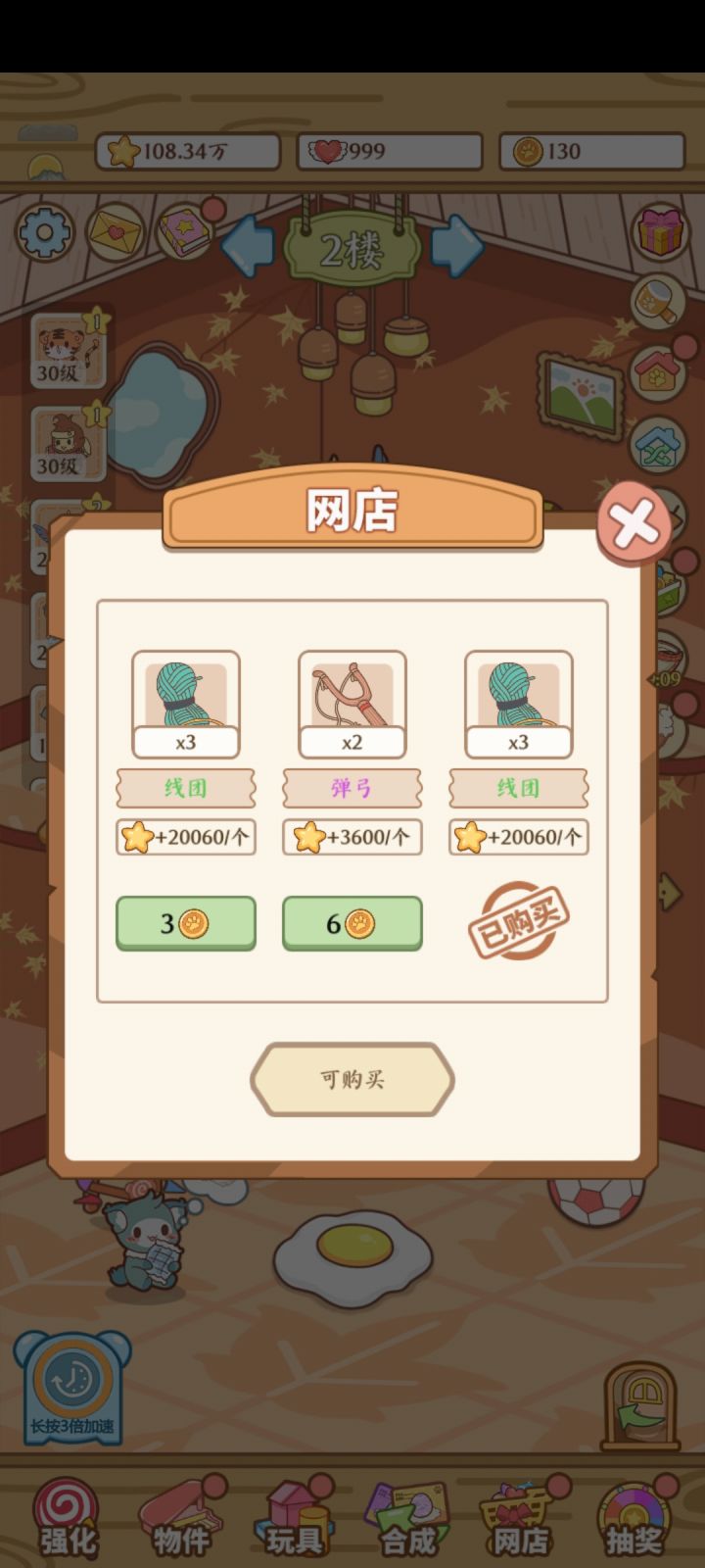 挂机很久终于全部宠满星了,家具玩具食物宝物这些也都满星了。后期真的很痛苦,时光球好像不能升级,孵蛋时间真的很漫长。 家具能靠看广告抽奖抽到的全都抽了,一直很困惑为什么家具还差那么多。刚搜了tap论坛的大佬的帖子后,才知道每只萌宠升星都会给家具,但是不一定,要靠刷萌宠的星,得家具。 但!我!完全忘记!哪些宠没给家具!需要重新刷了!而且后期真的很慢。所以不一定会删档重玩了。没满就没满了吧(其实这已经是