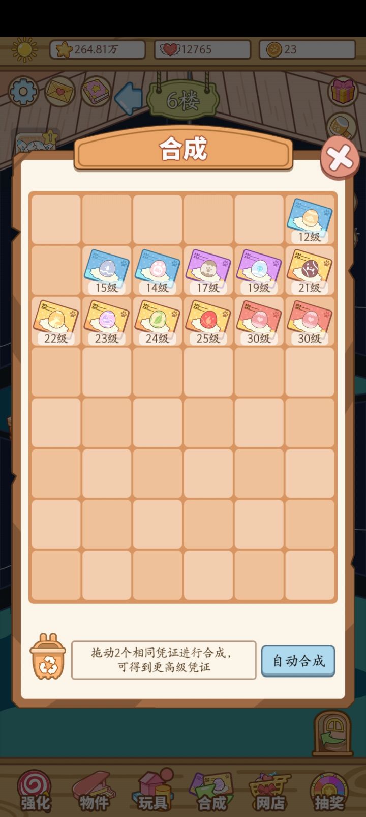 更新完之后第一层的等级合成凭证再也没动过,占了我一排格子😕