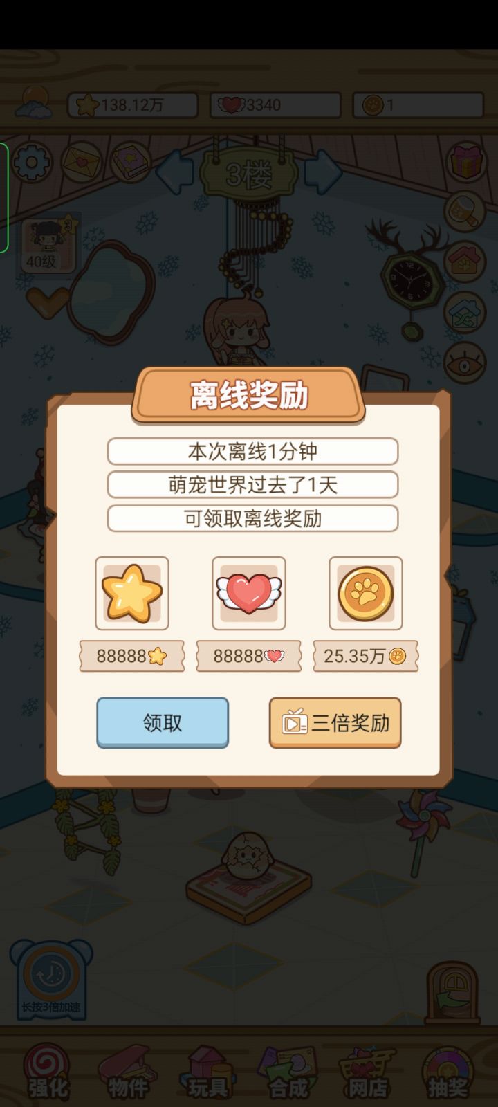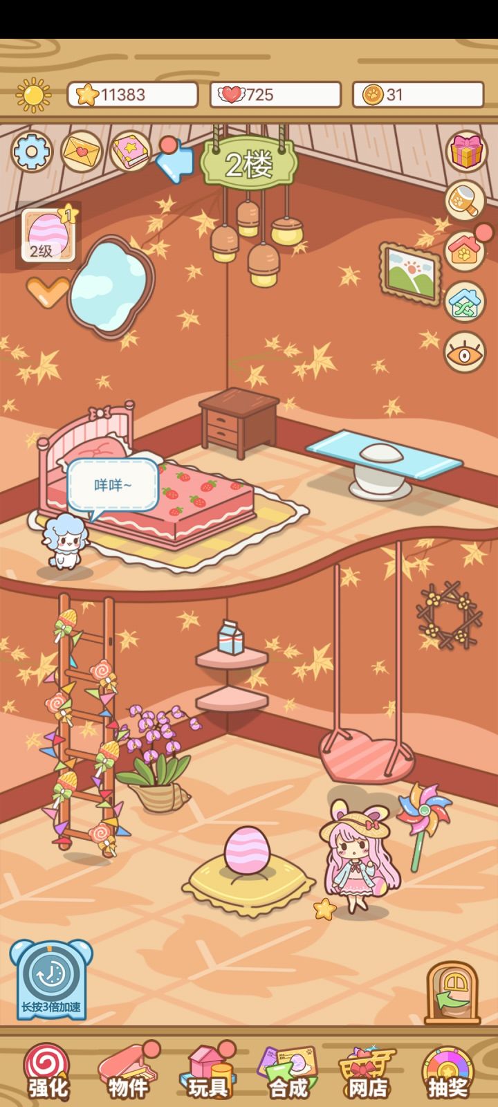 有一说一游戏还是可以的,就是角色太少,建议多加点角色,大楼也可以再来一栋,一栋全男的,一栋全女的我觉得也不错,然后作为一个强迫症,建议在合成凭证的地方加个垃圾桶可以把不要的凭证丢掉,以及装扮房间可以来几个套装类的