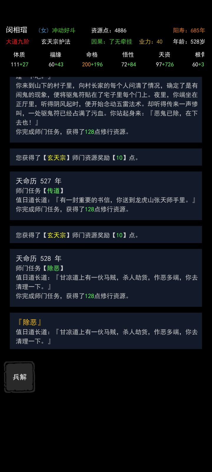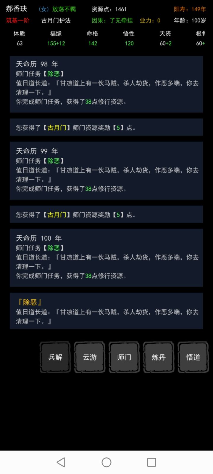 还说看看其他的呢 刷刷资源过99劫 师门任务就这样了