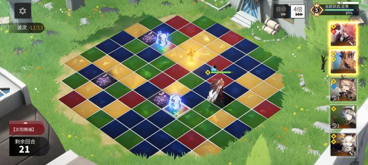托尔能顶半边天!热砂攻防战倒数第二关-涸谷缠斗攻略,直接选择队长托尔,长线作战可以让托尔的连锁技次数越来越高,甚至只连4格就可以打8次伤害,15格更是连打12下,属于是质的飞跃。然后按照正常情况配转色,建议安排浮士德、艾希(小不点)、菲莉诗、玛吉、丹棠(卡戎、醒山),因为回合数非常多,全员三觉0破就可以上场。注意菲莉诗一定要带,怪的伤害非常高,不带容易暴毙。配置好之后,前面10轮都可以考虑