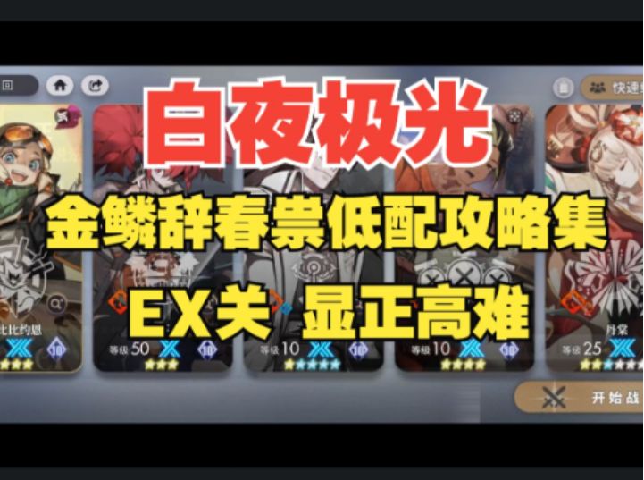这次打攻略素材真的打了很久,恳请大家多些点赞支持,如果能关注那就再好不过啦! 大家好,我是侦探! 这是【金鳞辞春祟·EX关(显正)】的 【平民低配】 攻略合集 所有关卡都会在tap陆续更新,会尽可能给出更加平民化/更低突破/更低练度的轻松解法。 希望侦探的攻略能够帮到大家,白夜极光,启动!#我的游戏日记Vol.6#攻略#游戏安利#游戏推荐#游戏讨论#白夜极光