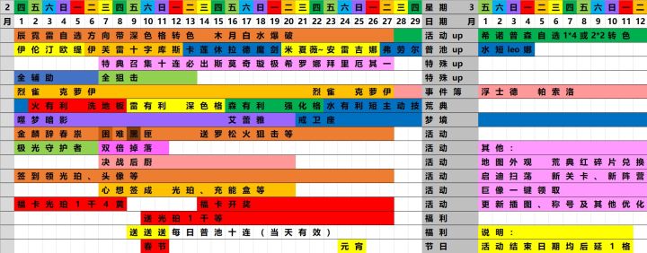 标蓝为版本更新新增礼包标黄为心悦俱乐部app内礼包标红为贵重或无法估值道具ps.截的图,所以可能比较糊,不会把excel表格做成长图,有会的朋友还望不吝赐教#白夜极光