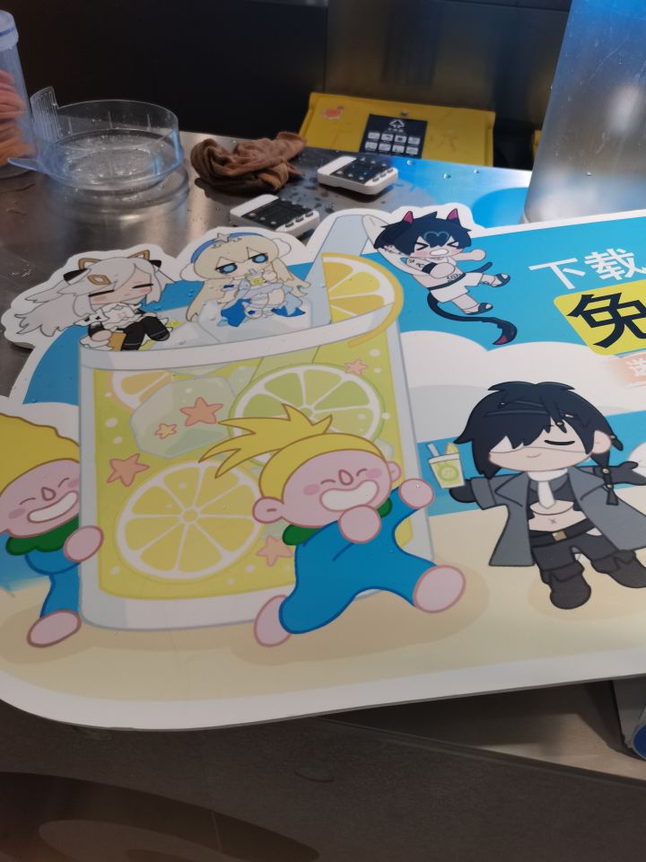 虽然立牌小小的,但是很可爱 个人口味评价:女王(酸奶味道)>老二(有很多西瓜)>杰诺(标准的黑糖珍珠奶茶)>卡莲(可能是选的少糖的原因)