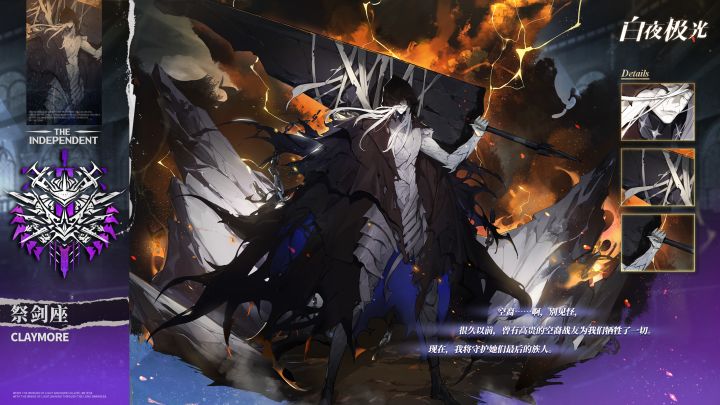 ✦旧印系统更新✦▌祭剑座他曾是国王右手,寂静猎兵的队长。他秉持公义,绝不动摇。纵使光能不再眷顾,他仍以星辰之力开辟未来。「谢谢你,空裔。你弥补了我们所有的遗憾,让我能完成承诺……与队友们重逢。」中文CV:姚铭舜日文CV:檜山修之※ 9月4日更新后,旧印系统的光灵试炼玩法,将新增祭剑座挑战关卡,挑战成功可获得光珀奖励。🎁关注白夜极光并在评论区分享你对祭剑座的第一印象,有机会赢取PV