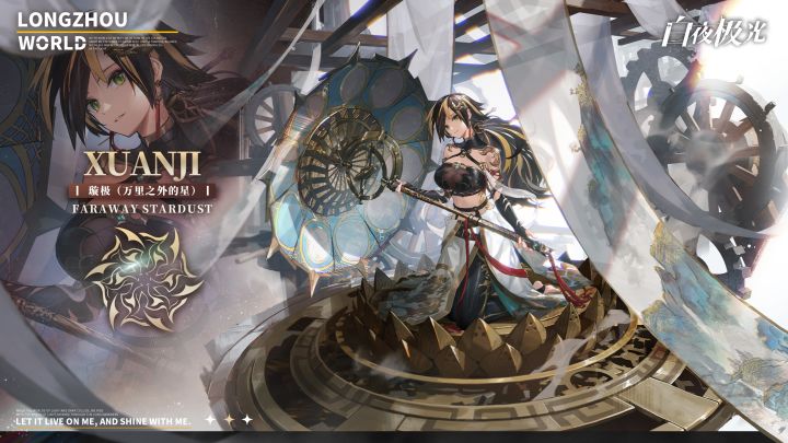 ▌璇极·万里之外的星传说在混沌的远古,人们以星为引,丈量万物。可星辰又太高太远,再怎么踮起脚尖,伸长双臂,都无法触及。故而星空,成了陆上生灵共同憧憬的梦。现在,璇极将星图摘下一角置于伞上,用它为你搭建风雨不侵的一隅世界。▌伊芙·红油至宝即便只穿着普通装束,伊芙也是红油扳手的人气王。然而她究竟有多受欢迎,恐怕连她自己也不清楚。决定为大家鼓气加油的她,在换上这身不知道从哪里搞来的奇怪衣着后,人气