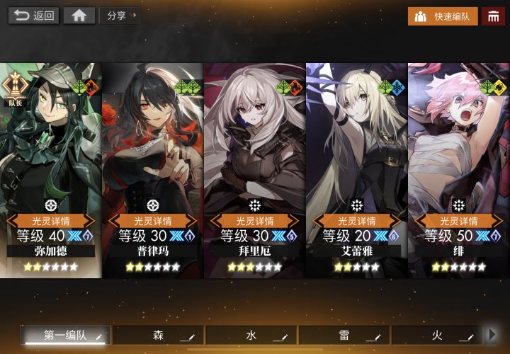 梦境在打过EX1之后每回合都可以生成10个万色格子,所以我们在打EX2的时候是不需要带转色的,然后因为森光灵的主动技伤害提升200%,可以上森队进行针对,同时尽量选择狙击职业的光灵,这里我推荐使用这种配队如果没有绯可以用进行代替,同样是狙击,可以吃到buff,而且有概率双击普攻,只少一个主动技buff,有普律玛或者小鹿则可以替换掉上述配队中的任何一个,优先替换掉多恩或库斯库塔。祝大家早日通过