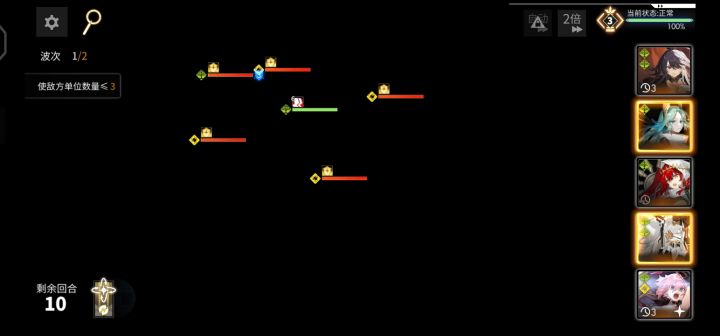 首先是角色选择,一破绯可以上,三圈或全图的森狙击可以上,一破的拜里厄也可以,关卡会自动拉练度所以不用担心没养总体的打法概括一下,每回合先在黑球周围绕圈多凑连击,然后在中心boss周围绕圈打普攻伤害,最后落点放在能同时打到中心boss和两侧boss分身(之一)的位置,这样才能破掉boss盾打输出另外,落点最好在怪打不到的地方,避免吃伤害,黑球和中心boss最好能每回合都尽量多普攻到,(更正)五星
