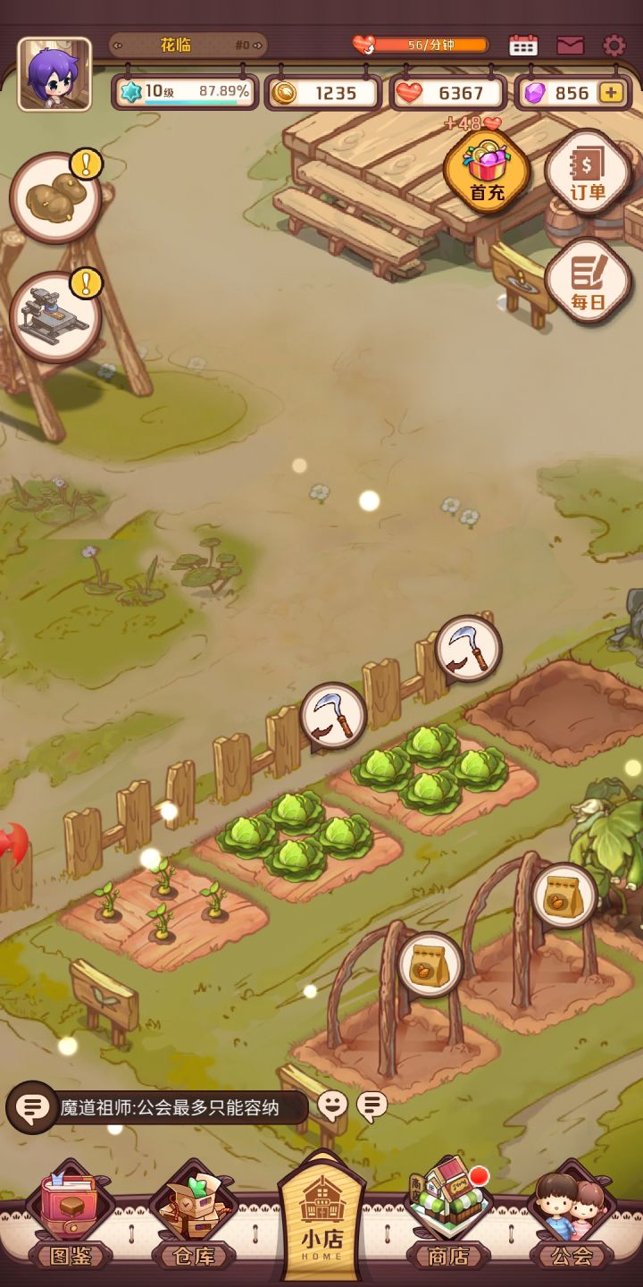 优点:画风好看,操作简单,慢游戏缺点:植物生长慢,蘑菇、树等不能种植的更慢,基本都是两小时起步。菜品也是随着多样性时长更长了。 除了刚开始进入游戏,升级快,直到7级。 然后就在7级“卡”死了。(由于时间长,基本任务都没办法完成。) 只能过几个小时收一次,就没了。