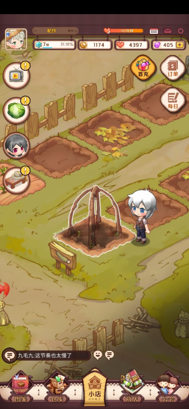 玩了一会,在我玩过的游戏里让我不满意且弃游的原因就是农作物成熟时间太长,这个也不例外。还有就是点了东西,反应太慢。