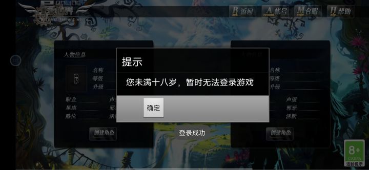刚玩了一会,删退了,再登陆为啥显示未成年?