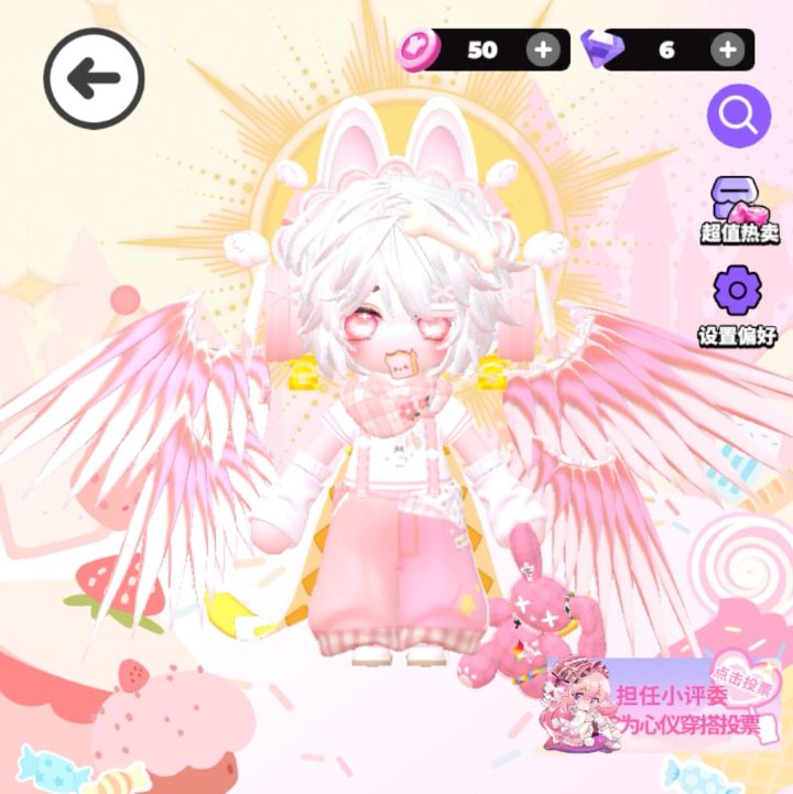 看到参赛一群圈内大佬可以沉浸式体验垫底了 所以请投我一票!#碧优蒂甜美穿搭大赛#游戏日常