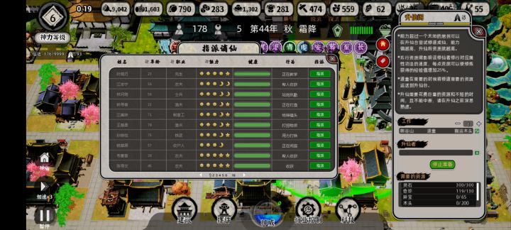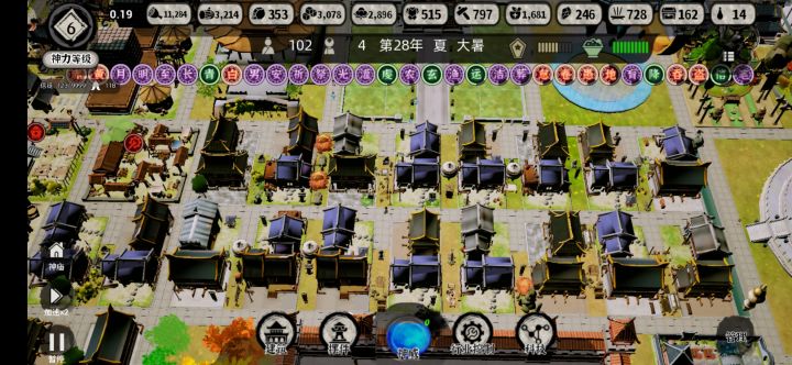 1.核心:耕读传家(老祖宗诚不我欺)。2.开局"资源整合"尽量不要整合到500的石头和铁矿,因为有损耗,而且里外里两次运输很麻烦,直接用来开地就行了。等建造奇观的时候用"移动资源"直接移到工地上。3.开局必备且必开低级神为风雨神,三张卡改变一个冬天的气候,一些灾难也能用卡片扛过去。4.早开青帝庙,尽量地图资源耗尽之前就能升到较高级别,到时候过渡比较平滑。5.建造的时候留点余地建个内外城啥的