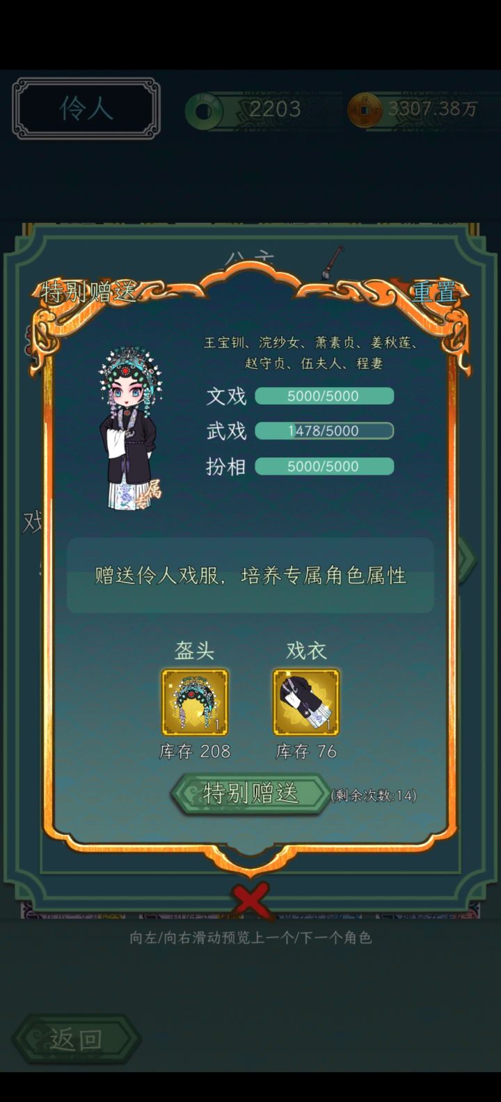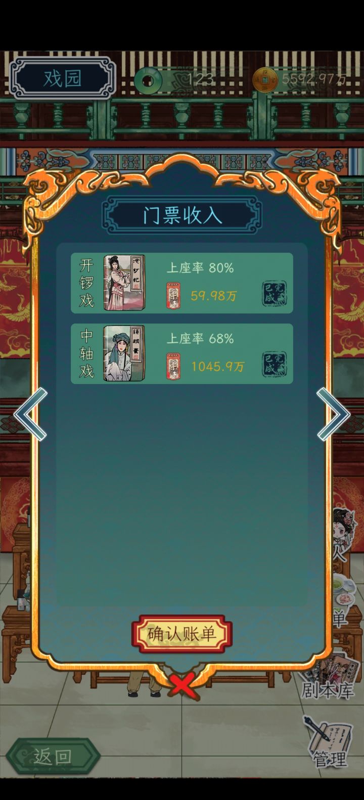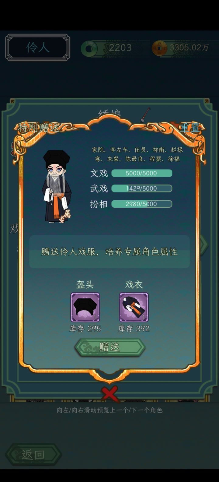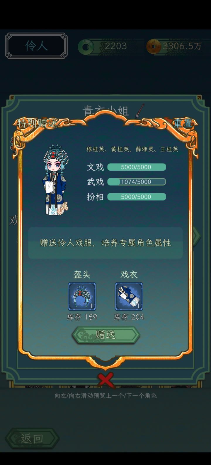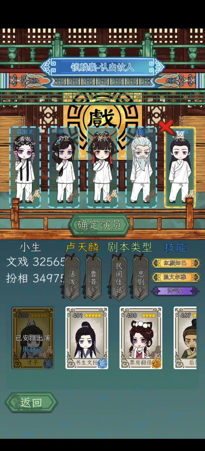 图里几个比重高的戏,我的伶人安排。数据我就不多写了,我不会还懒最重要就是把虞家小姐和公主互学,虞家小姐唱薛湘灵,公主唱赵守贞,技能和珍宝拉满,专属穿上,随随便240万以上票房,不懂可以问哈虞家小姐(薛湘灵)穿!!公主(赵守贞)穿专属!旧宫妃子(梅香)可上专属才女(碧玉)不用穿专属绣娘(赵禄寒)可穿专属,霸王别姬也有专属位置书馆老板(卢天麟)可穿可不穿师太(薛夫人)专