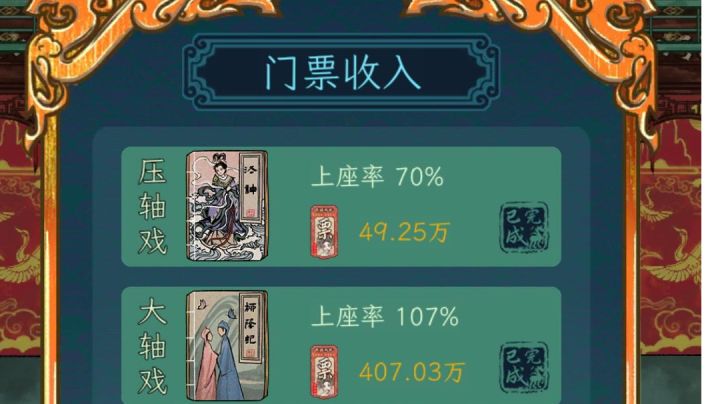 一个大剧本由许多小剧本组成,而每一个小剧本的票房收益是不同的,在闯关时票房越高的小剧本属性要求也越高,在票房收益更高的小剧本上属性更好的角色总体票房更高。同一个角色可能在多个小剧本中出现,给出现更多的角色上更高属性也能带来不小的收益。票房的上座率很关键,上一场的上座率会以10%转化到下一场,最高能到111%,一般角色点亮了就一定会全来。最强角色兰映秋,就是开局送的两个角色中的女角色,新手光环的