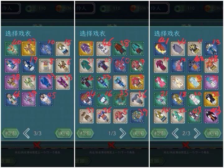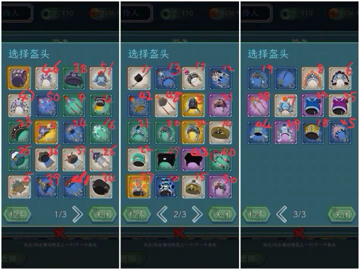 戏服和头的搭配,两张图标号一样的就是一套