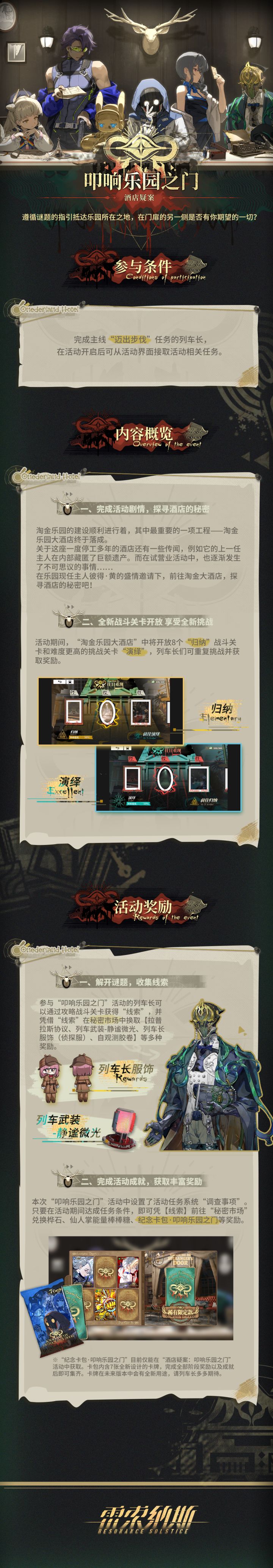 《雷索纳斯》全新活动「酒店疑案:叩响乐园之门」玩法介绍