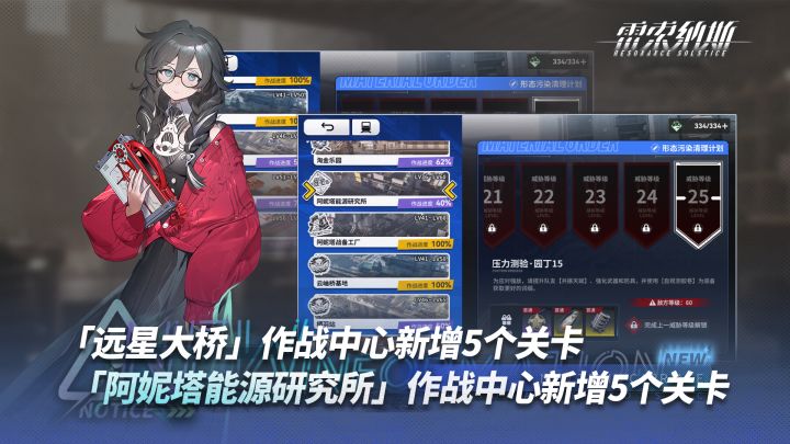 #雷索纳斯 「远星大桥」作战中心新增5个关卡「阿妮塔能源研究所」作战中心新增5个关卡————————【下载方式】✦官方下载:http://t.cn/A6QzFLmz✦TapTap下载:http://t.cn/A6loqUxC客服邮箱:resonance@gameduchy.com【关注我们】✦官方交流1群 :738915435✦官方交流2群 :810297570✦官方交流3