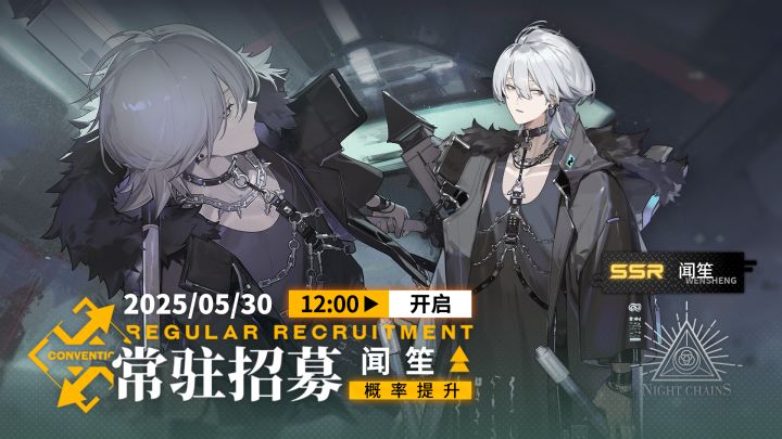 #雷索纳斯 # 【常驻招募】 起止时间:5月30日12:00 - 6月3日 12:00 SSR 薇尔岚 获得概率提升 【常驻招募】 起止时间:5月30日12:00 - 6月3日 12:00 SSR 闻笙 获得概率提升