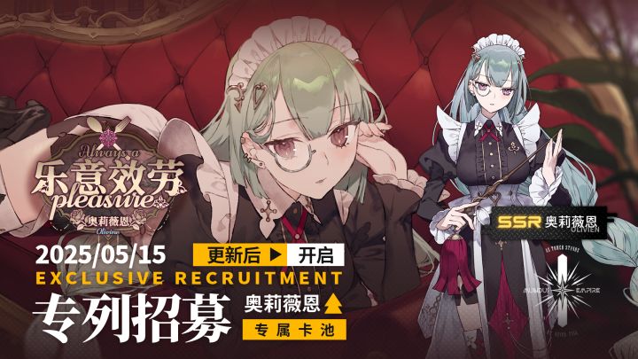 【特设招募】起止时间:5月19日 更新后 - 6月11日 12:00招募说明:以下乘员获得概率提升SSR 乌刹娜【常驻招募】起止时间:5月20日 12:00 - 5月27日 12:00招募说明:以下乘员获得概率提升SSR 卡塔斯【常驻招募】起止时间:5月23日 12:00 - 5月30日 12:00招募说明:以下乘员获得概率提升SSR 约书亚#雷索纳斯 —————————