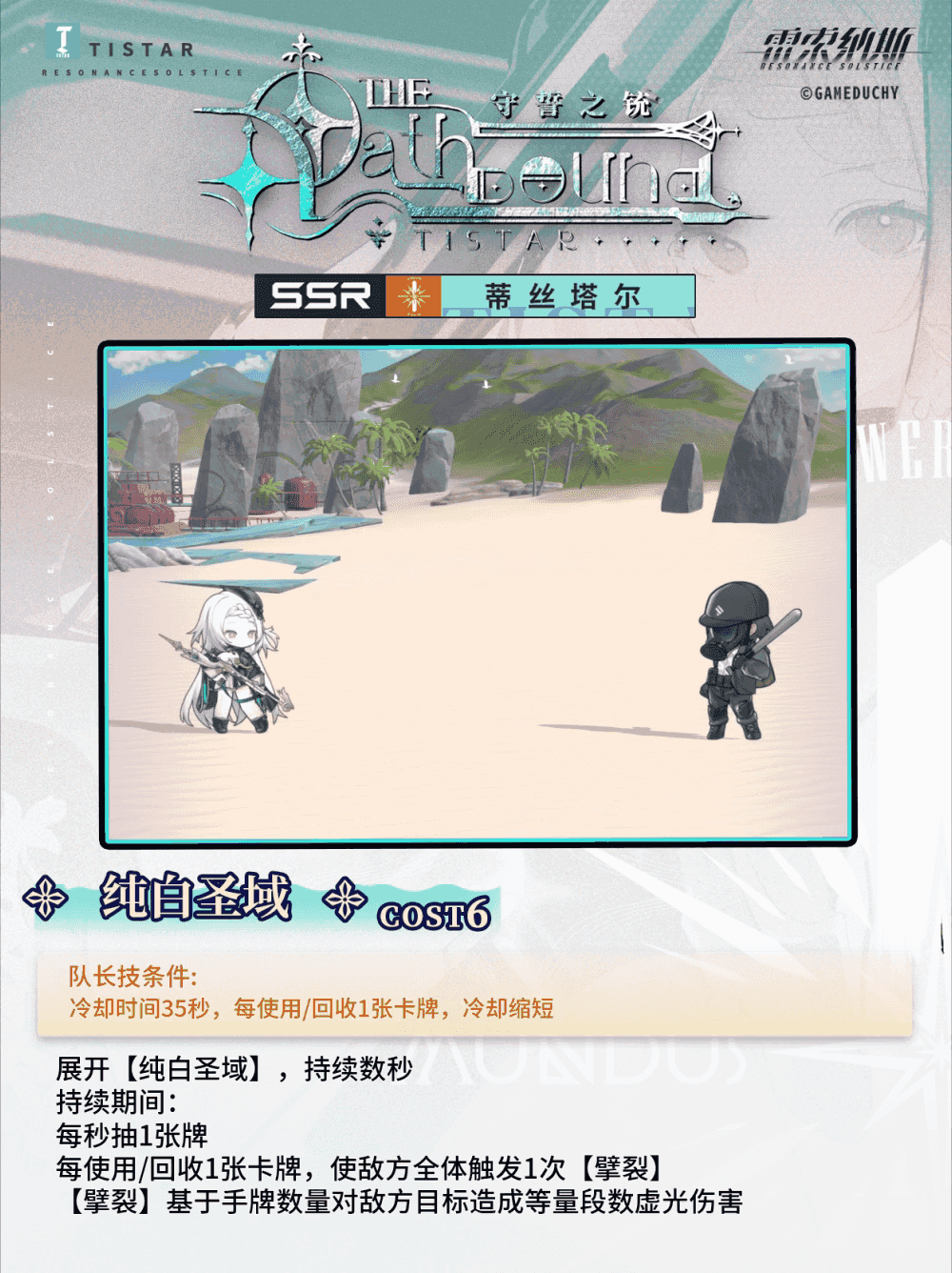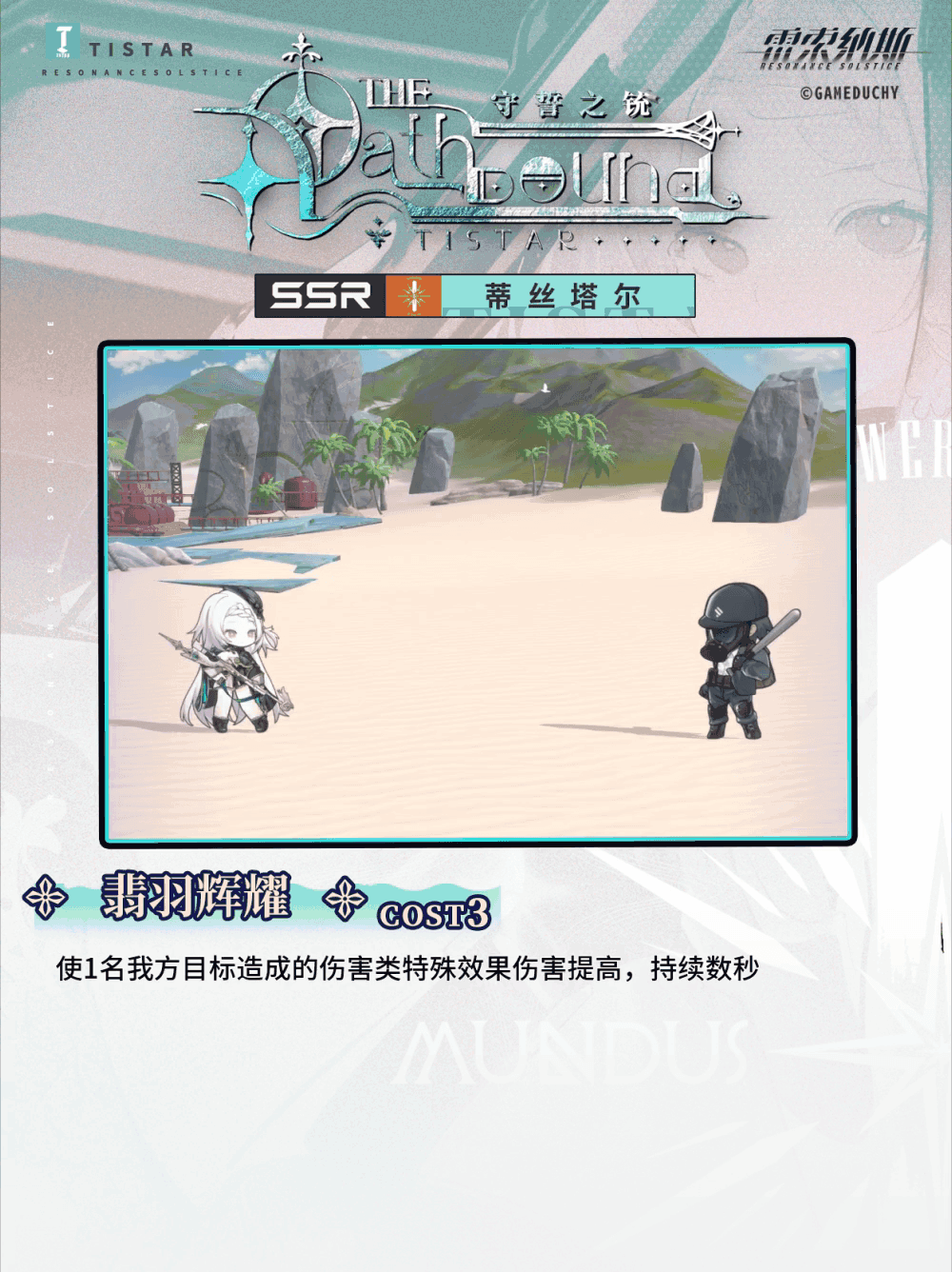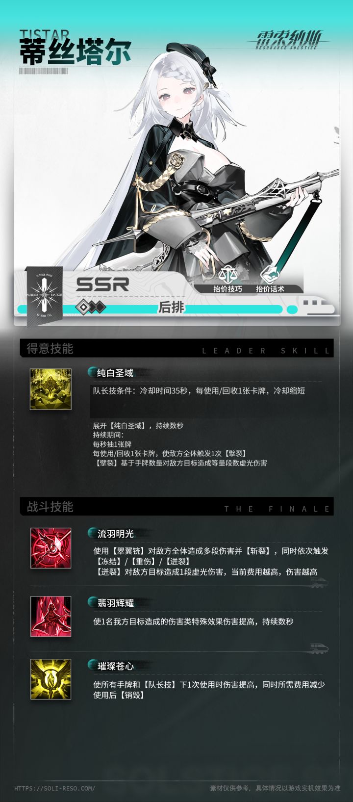 #雷索纳斯 #雷索纳斯蒂丝塔尔 ——【无垠号档案】 ——蒂丝塔尔 Tistar“淑女应该做到的事有很多,骑士应该做到的事也有很多……把那些全部装在脑子里的话,感觉只会束手束脚呢。总之现在的我是身为骑士屋一员的蒂斯塔尔!”中文CV: 苗子日文CV: Yukana————————【下载方式】✦官方下载:http://t.cn/A6QzFLmz✦TapTap下载:http://t.