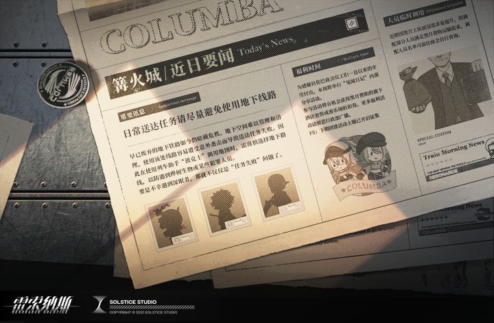 黑月锁链的子公司NOKTO涉足多个产业,在传媒领域更是独占鳌头。旗下杂志《篝火客》包罗万象,让读者们足不出户便能欣赏各个篝火城的文化底蕴之余,还能深入其中,一览各城奇闻趣事与时尚潮流。本期《篝火客》的封面人物是荷塞·黎,修格里城的现任市长。“夺回属于大众的修格里”,他以这样的口号得到了无数市民的拥护,最终以高票从一众候选人中脱颖而出……这位传奇市长的故事刊登于内页的人物侧写专栏。“列车长,辛苦