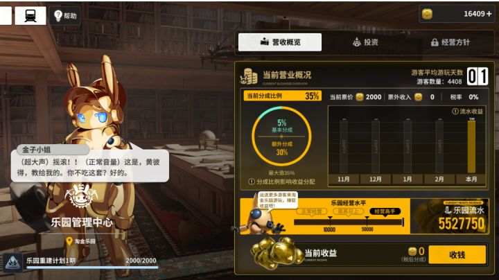 可惜没赶上开服奖励分成拉满100%的bug首先感谢三位脑婆(× 战犯✓)今日份对我满满的爱❤️本期内容主要讨论淘金乐园是否适合养老。淘金乐园收益方式很简单:拉客到淘金乐园就可以领提成。没有延期付款,没有分期付款,该领多少提成,下车点开“金子小姐-乐园收益”就可以把该拿走的钱拿走——一开始我以为还要等游客“体验”完,我才能结算薪水(笑鼠)那么这个收入是多少呢?我想这才是我们应该首要关注的问题