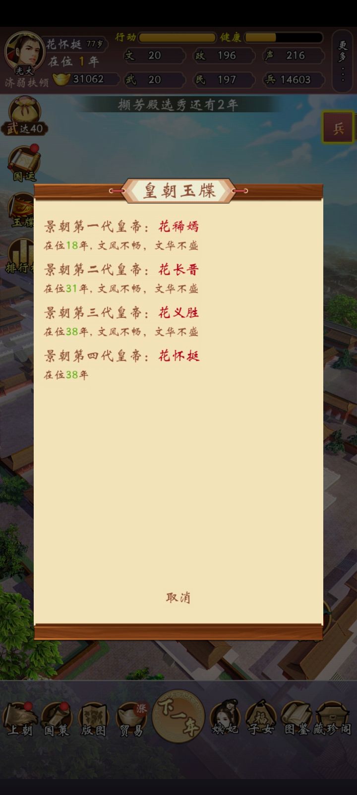 继承之后年龄错乱刚抓周就继承了,结果七十几岁😅而且我还不能看视频,当个几年皇帝很快又死了
