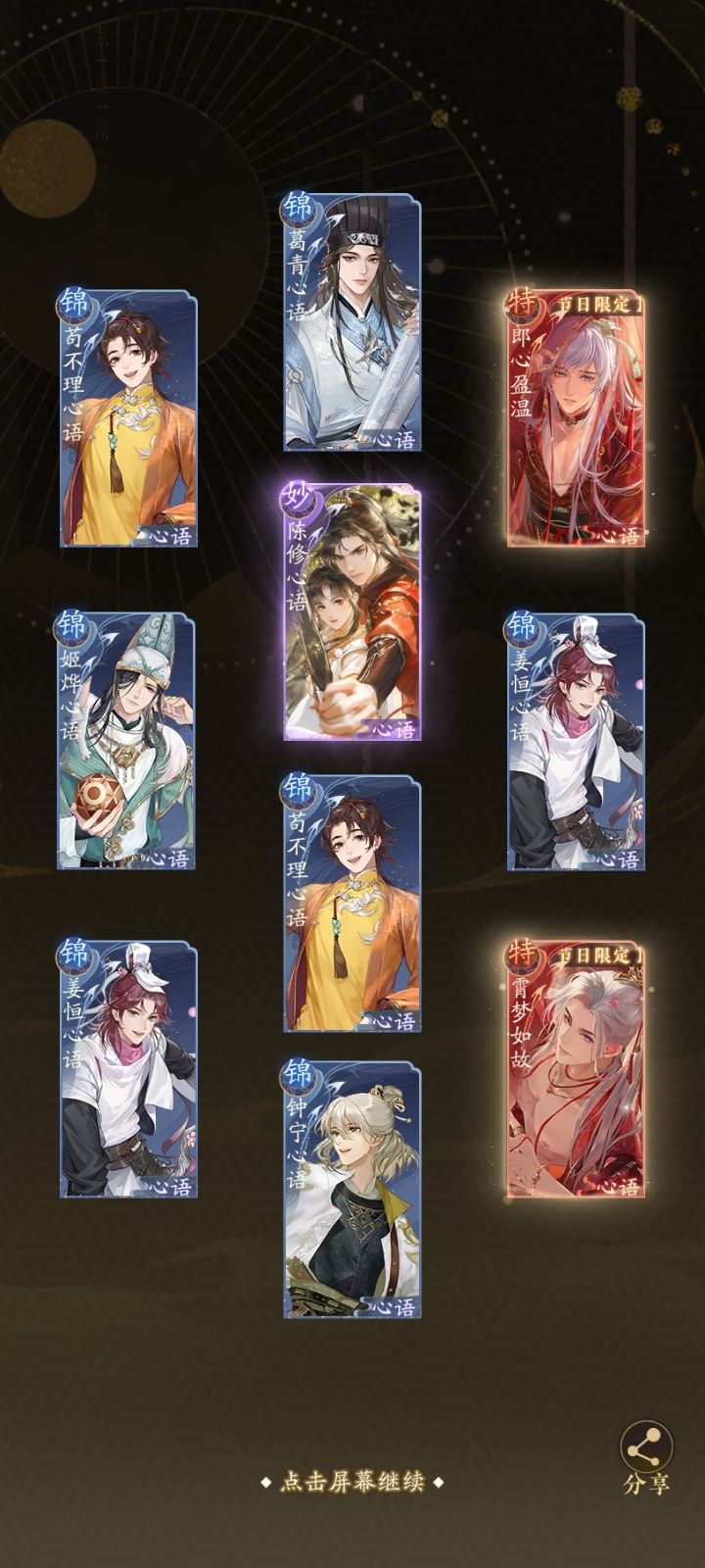 谈谈对这次半周年对看法⬇️(一)角色卡池君九作为一个绝,卡面精细程度还是低了。第一次看到他,以为会在道长的卡池里作为妙卡出现——首先他看上去就达不到金卡该有的水平,其次他在剧情里的作用感觉就像一个讲解新机制的工具人,这个角色的存在是为了道长的存在服务的。这次对君九的立绘做了一定优化但剧情里还是那个样子,抬他上来是摇子你写不出金卡角色了吗?我看你新春卡池能抬个什么出来。(二)婚卡期遇池无底