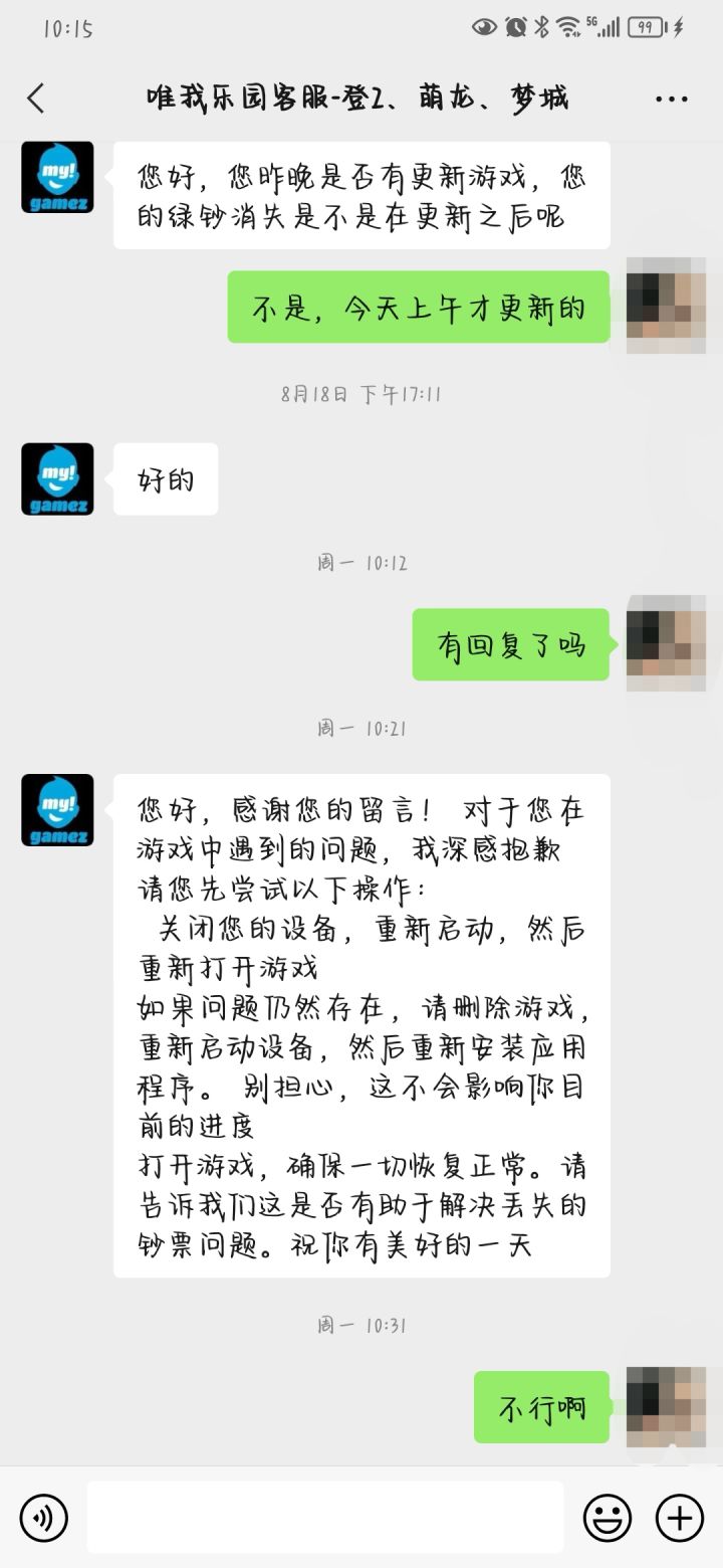 8月17号晚上我正常在梦想城镇把挖矿最后大奖有200绿钞任务完成了,绿钞也到手之后我就下线了,也不会留意说去截个图保留记录,结果晚上上线绿钞没了,挖矿的进度却保持在了我最终大奖的进度,相当于挖矿工具给我用完了,奖励没给我,真是一把好手啊!其他生产的吞没吞我就没细算了,那些可以再花时间去生产。然后第二天联系客服,打遍电话没一个通,有些接了一两秒不说话就挂断,QQ客服工作日工作时间也没有人理睬,最后终