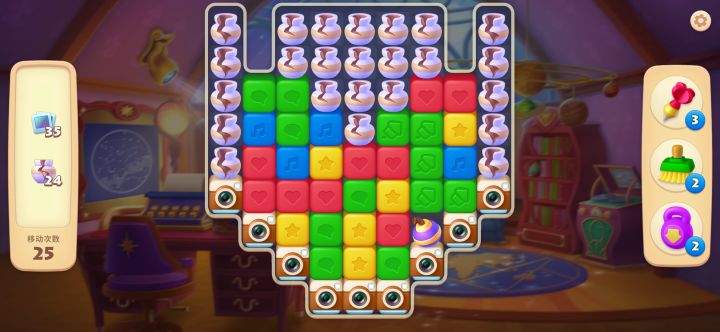 不想让人玩就明说,整这么变态的关卡恶心人什么意思啊?地方小,颜色多,锯齿状边缘。超多陶罐要用炸弹炸,很多还要炸两次。绞尽脑汁都做不出几个炸弹。道具用完都过不了。还说这是简单关?
