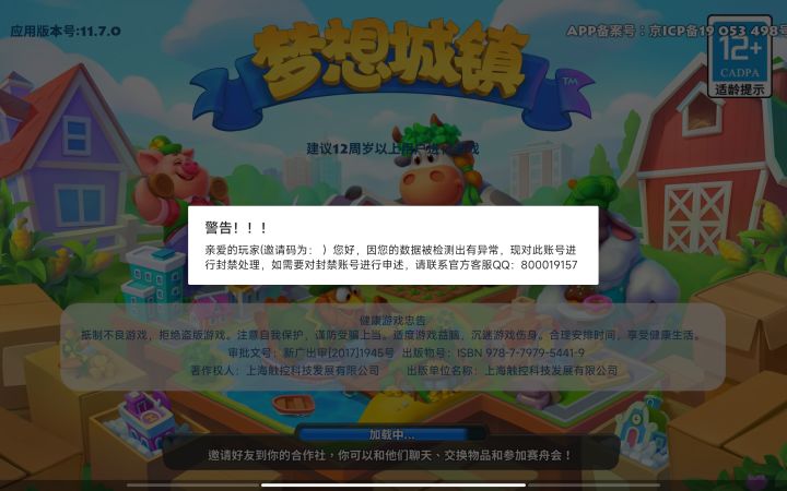 我刚玩一个周左右,每天就正常打开平板收菜,也没有多设备登录,中午就显示被封了,找客服还要等到周一#梦想城镇