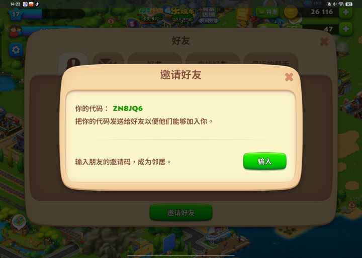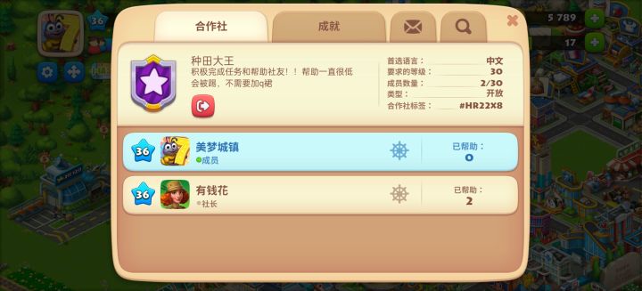 如图。常玩的也可以发你的码,我去加你。以及有活跃的合作社吗,想进。