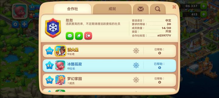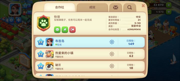 加好友(互相填箱子)加社团的可以看一看社团要求不高,作弊号勿扰,每周最少完成一个任务,社团的目标很简单-不降级。