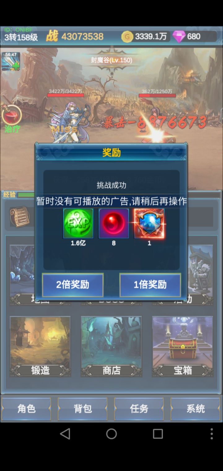 烦得很早上打个转生怪出了两个紫宝石没广告看,亏了50000转生值一下午没广告看,这又亏个蓝宝石