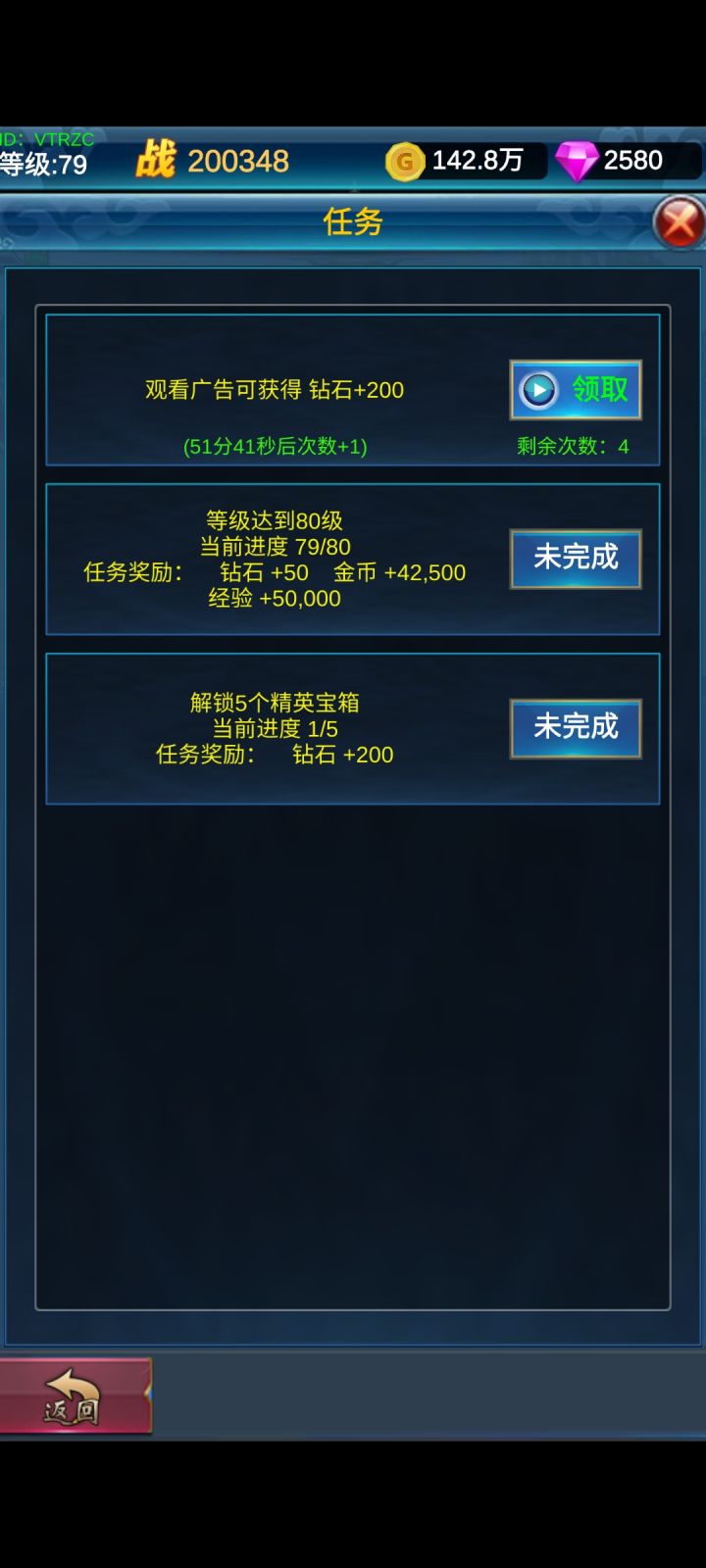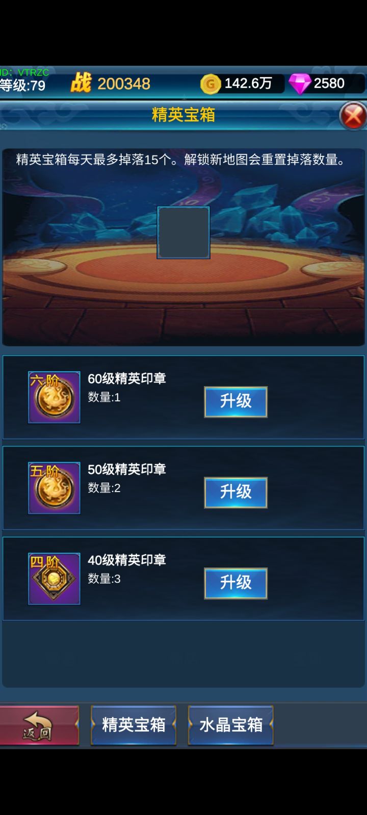 游戏前期升级较快,60级之后开始慢起来了,后期经验主要来源是秘境,后面到跨地图前,比如79升80,89升90前可以存几个秘境次数。游戏没必要存资源什么的,能刷新商店了,存点金币,不用多,几百万就行,把五次刷新次数一起用完。钻石抽水晶宝箱全部花完,橙水晶和红水晶够升级就用,一套装备能一直用橙水晶升级上去,并不会浪费,不要想着后面的boss直接出高级的橙装,橙水晶如果打boss勤快一点,基本是不会缺的,反而会溢出很多。战力高了,挂机效率也会高很多。