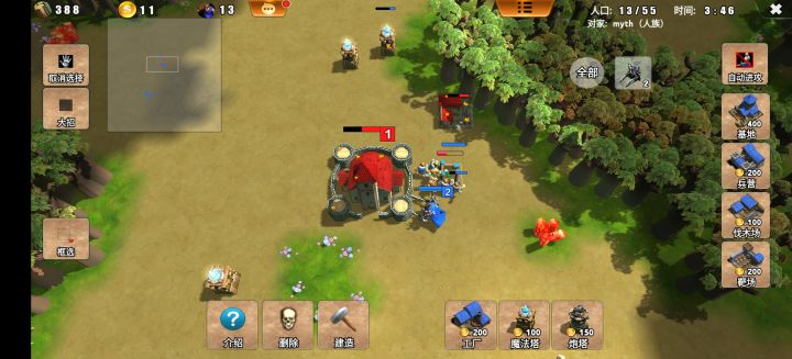 关卡主要是为了熟悉兵种,英雄和游戏玩法,这个攻略只是为了轻松过关卡,图一乐。希望即使过关了也尝试用常规方法打一打,熟练游戏模式开局先开自动,拉农民去修4个箭塔靠近对面大兴野怪处,家里攒钱升2本,有钱就建箭塔,注意拉自己英雄(笨比AI会自己送死)有炮塔修炮塔(炮塔攻击范围很远但很脆,所以不要贴脸,往前一点就可以了)炮塔旁边继续修箭塔,不一定打死,限制电脑拖时间也能赢。(炮塔不宜建太多,魔法塔和箭