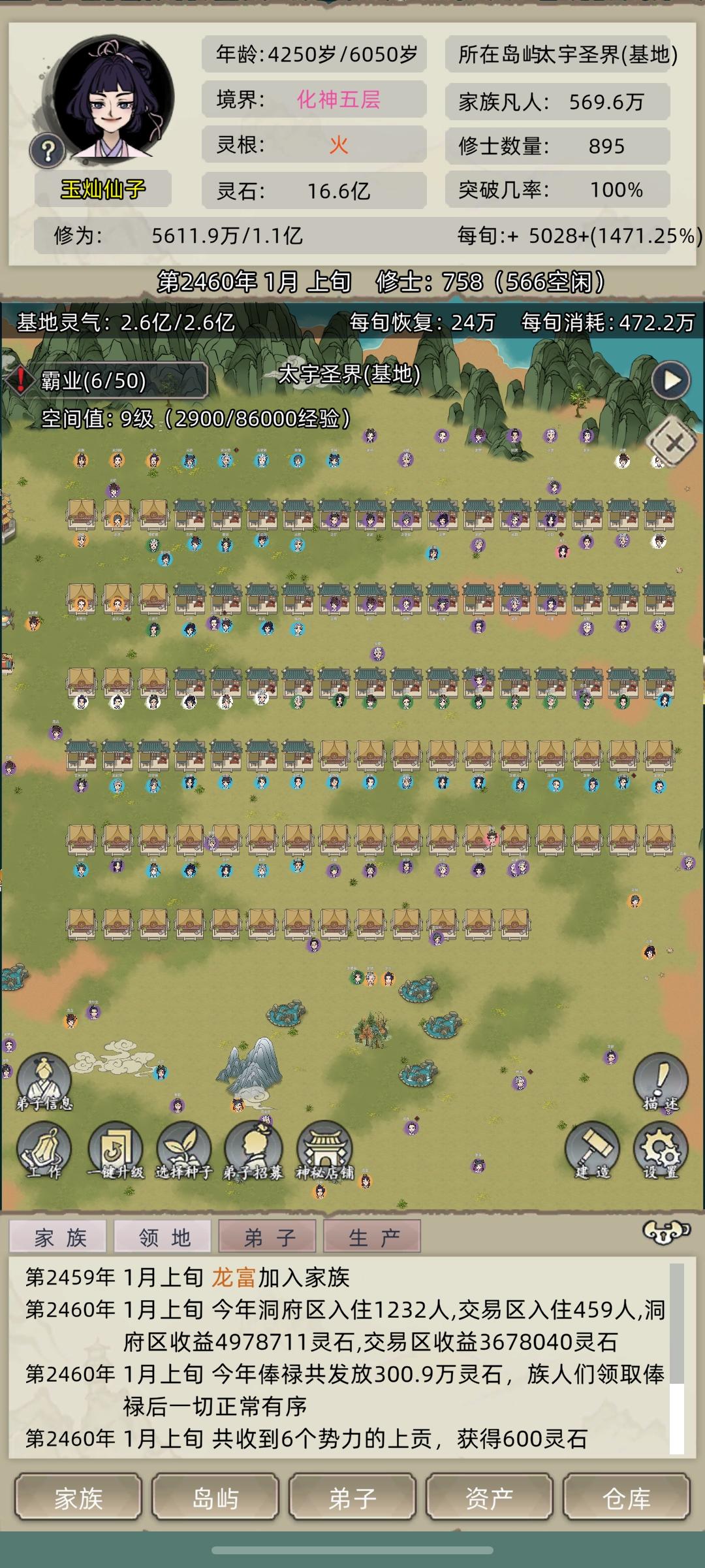 家族模式老祖肉身成圣流 过亿血量 两亿六千战力 ,肉身成圣的血量极限是多少呢?輪回家族流派,再也不用担心弟子寿命不够了 也不怕培养弟子到最后打水漂,生生世世都在为家族效力,不知道各位道友有什么意见吗,下一步该往哪个方向培养!。#游戏日常 #游戏杂谈 #修仙家族模拟器