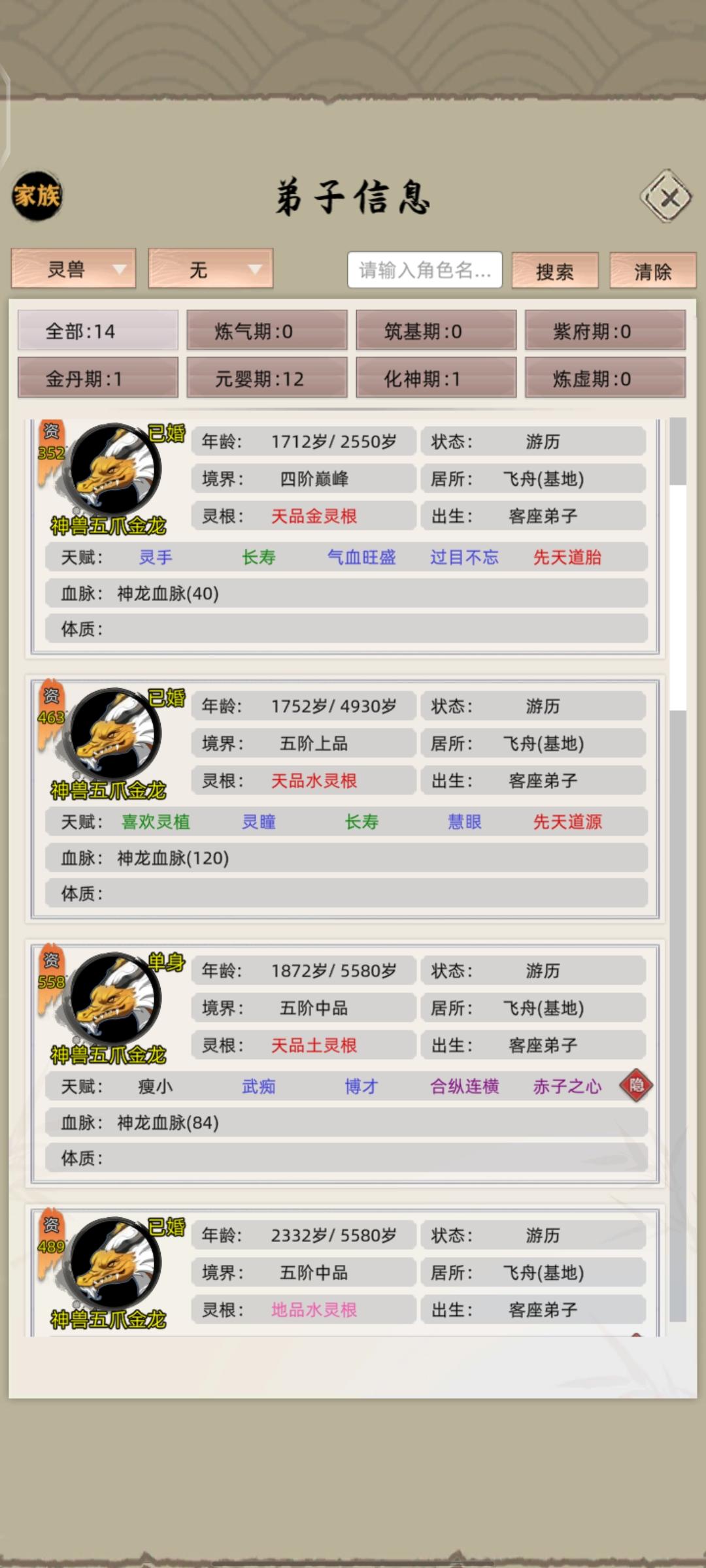 为五行天灵根的五爪金龙可以生出五行五种灵根的孩子,不能生出五行天灵根,其中有一些变种,如有特殊体质的金龙变异出风灵根,生的孩子会遗传变异灵根,但一般不能遗传父母灵根以外的属性,变异体质灵根除外