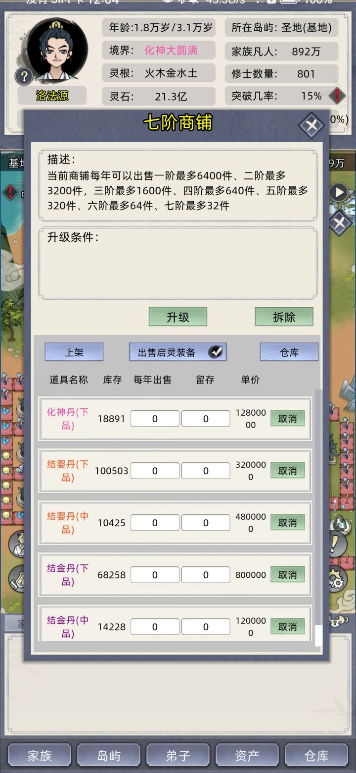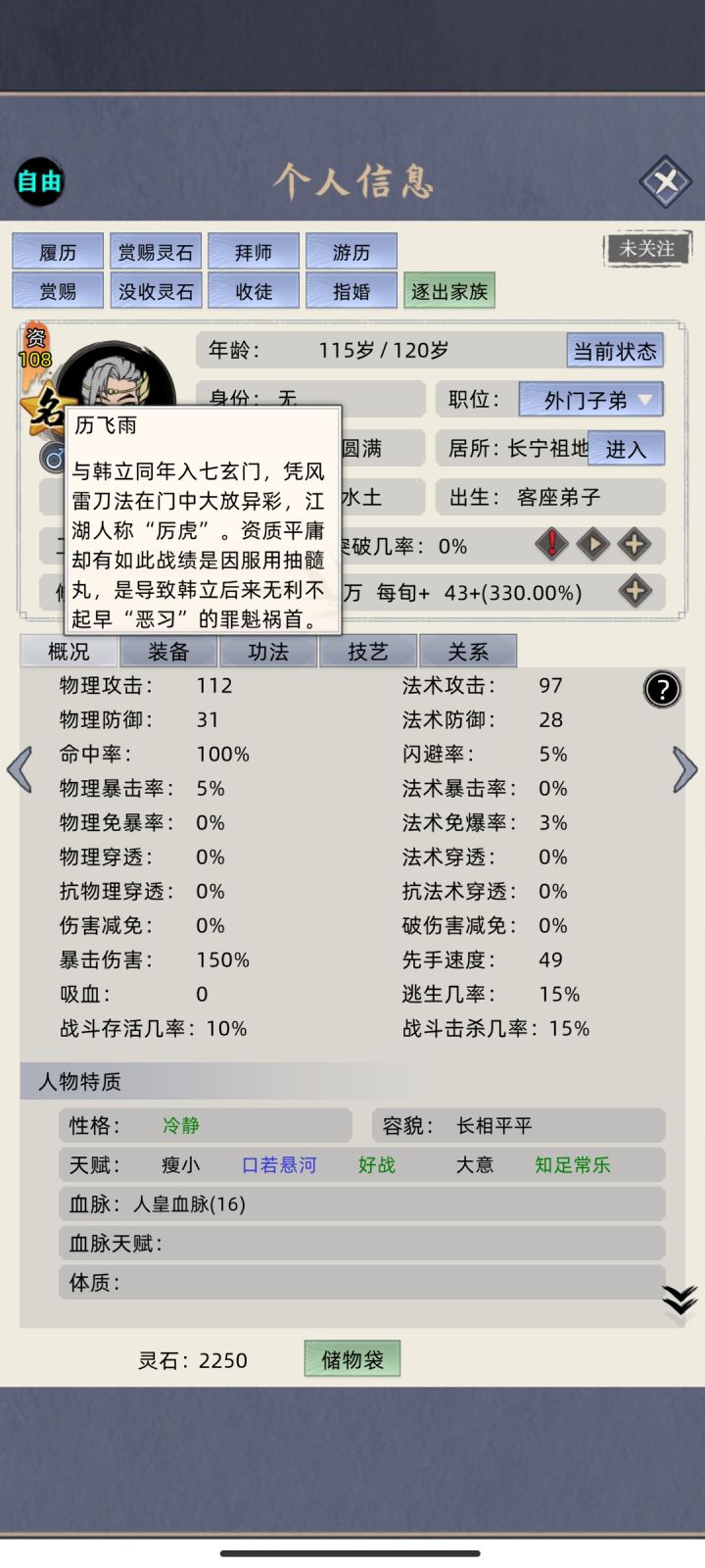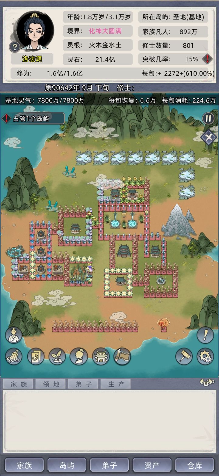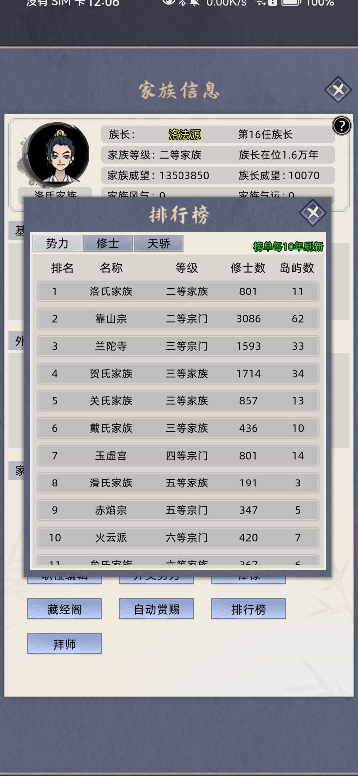 #修仙家族模拟器 #发现好游戏 有个兄弟说这还不算最高难度,那就直接自由点-40挑战一波,顺便看能不能把废物老祖保送飞升,不广告,不带祠堂,不开天道台,不sl,记住我的邪火老祖。老祖52岁练气巅峰突破失败三次,死于一阶海兽攻岛。 今晚开始评论区更新,欢迎大家也来挑战。