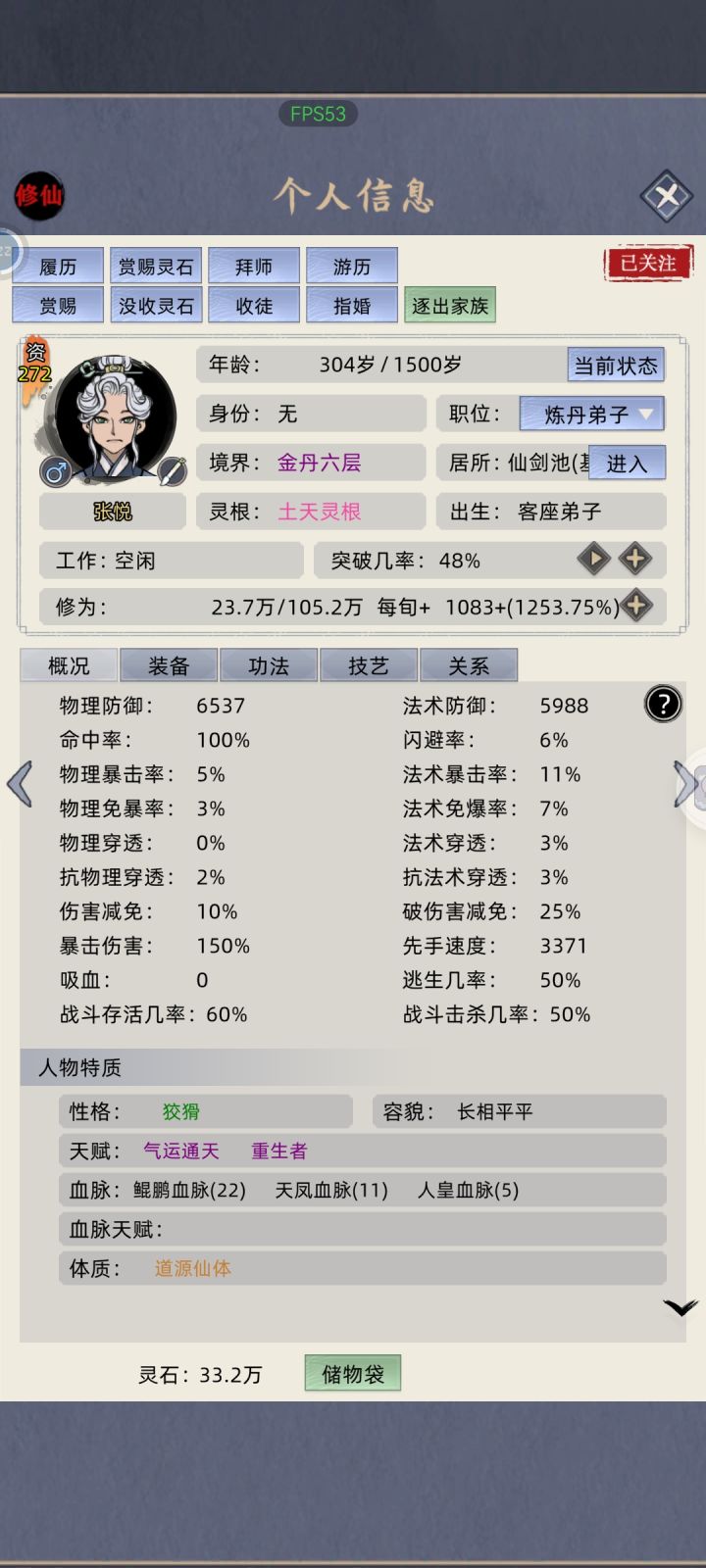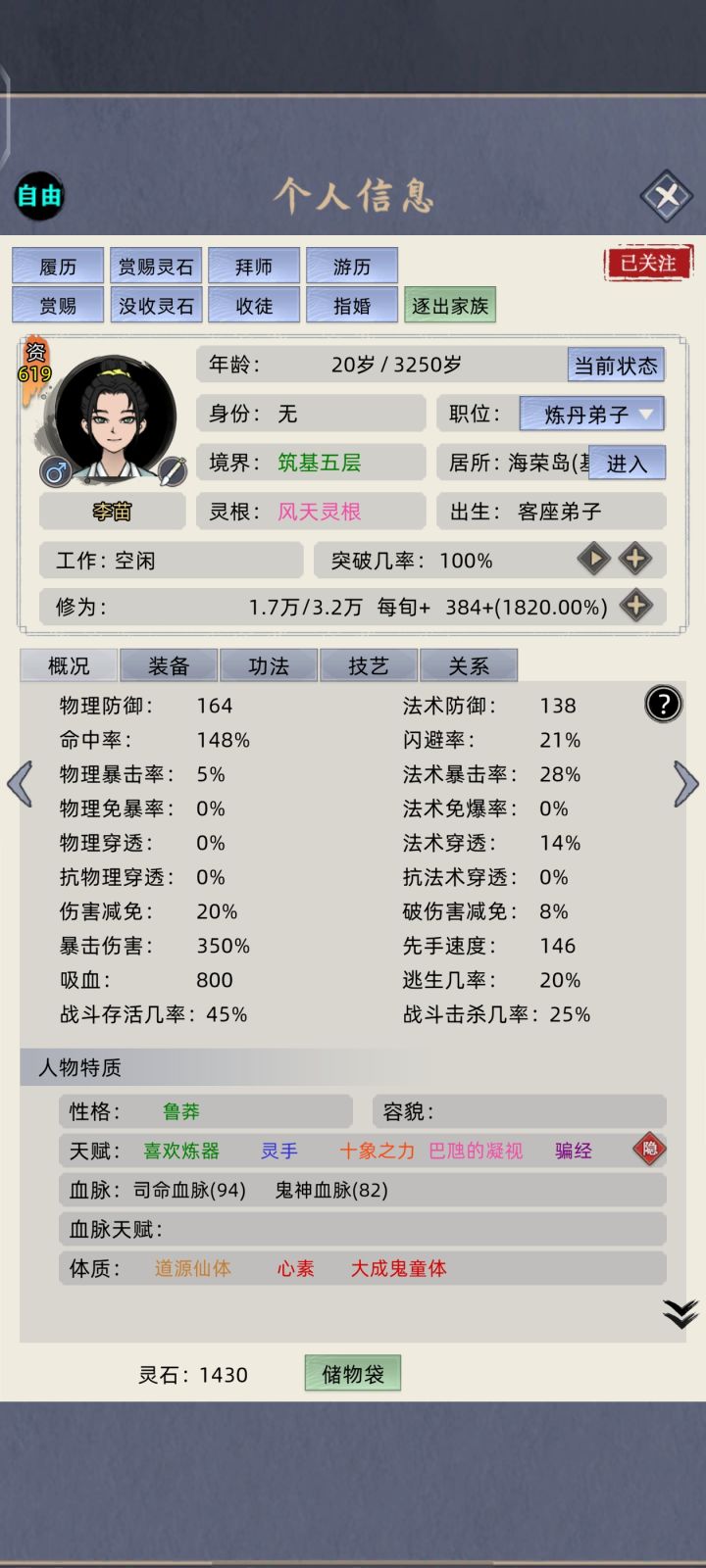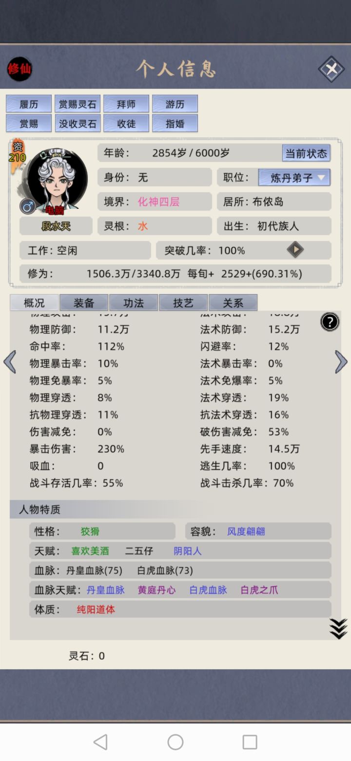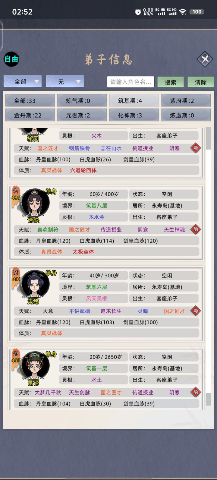 #修仙家族模拟器 #发现好游戏 有个兄弟说这还不算最高难度,那就直接自由点-40挑战一波,顺便看能不能把废物老祖保送飞升,不广告,不带祠堂,不开天道台,不sl,记住我的邪火老祖。老祖52岁练气巅峰突破失败三次,死于一阶海兽攻岛。 今晚开始评论区更新,欢迎大家也来挑战。