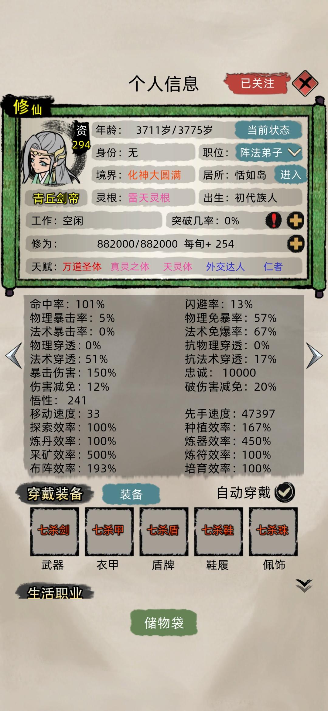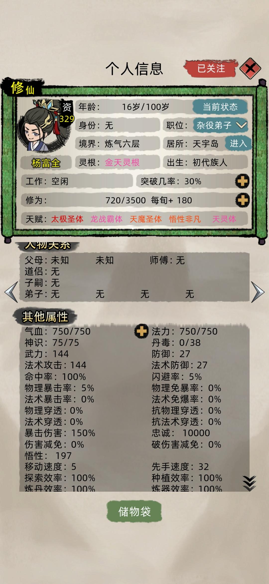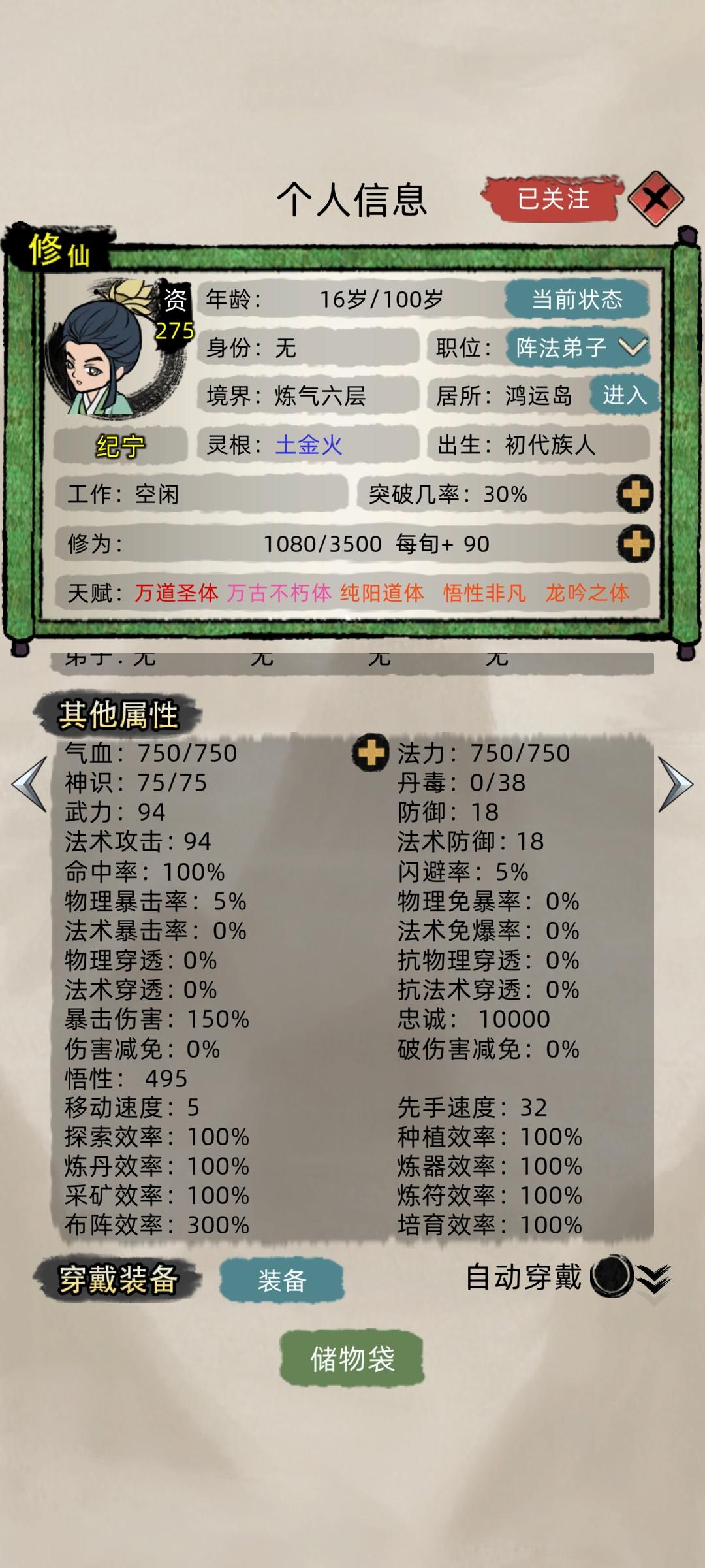 69岁金丹老祖😂😂我所有里面结金丹最快的了,我最快成元婴期的350岁左右。