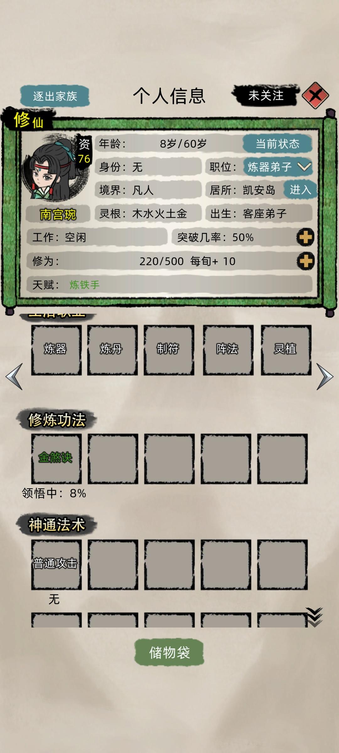 这把老夫懂了!绝世杀神卷土重来,从隔壁那里学来了一几个小妙招!这把老夫要杀穿乱星海,让好弟子不再无辜枉死!开局不废话,先卡分身挖矿,卡分身练习阵法,卡藏经阁练功,卡灵池修炼提速,再造1级聚灵阵,卡聚灵阵给老祖提速!最最重要的是!哈哈哈!弟子出征状态下不会挨打,让他们长时间保持出征状态,大概率能活过去!颤抖吧!四大流氓们!乱星海头号暴徒降世了!!!!