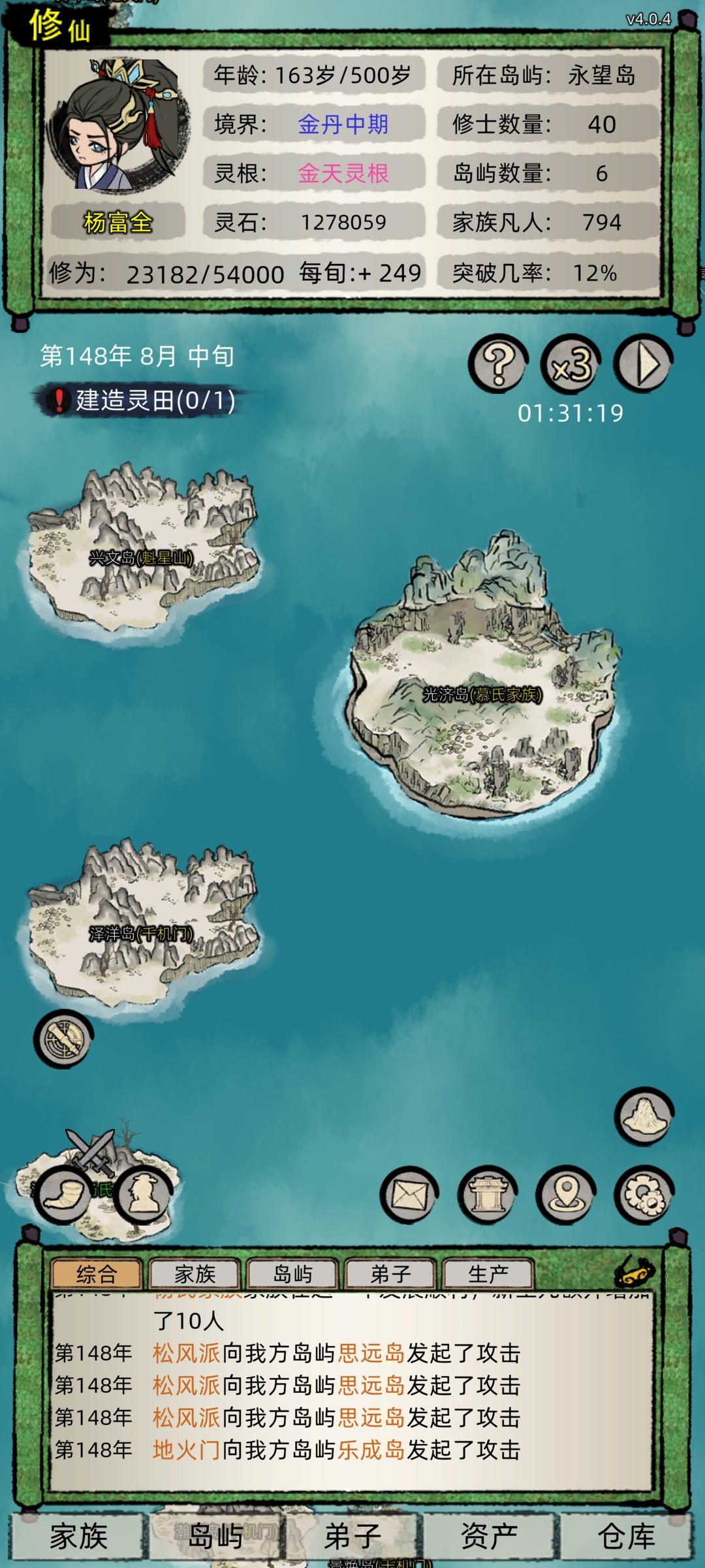 更新进游戏,电脑本来被我打的只剩一个宗门一个岛,进游戏30分钟,一看,电脑这个宗门占领了393个岛,吐血,我试了一下,好难抢夺灭杀他们