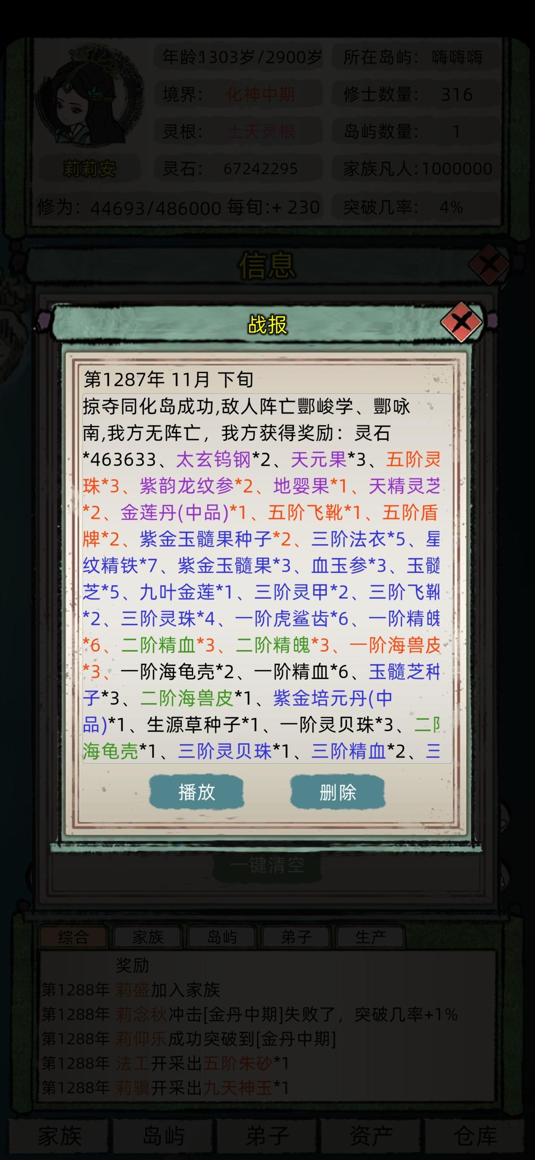 喜欢抢我岛是吧,那就给你抢,抢一次就一直掠夺,直到化神GG