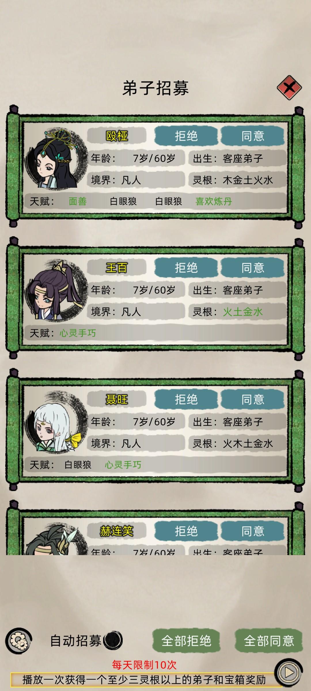 属实是白眼狼本狼了,还有个弟子天赋是有点丑和英俊,可惜直接拒绝了哈哈哈