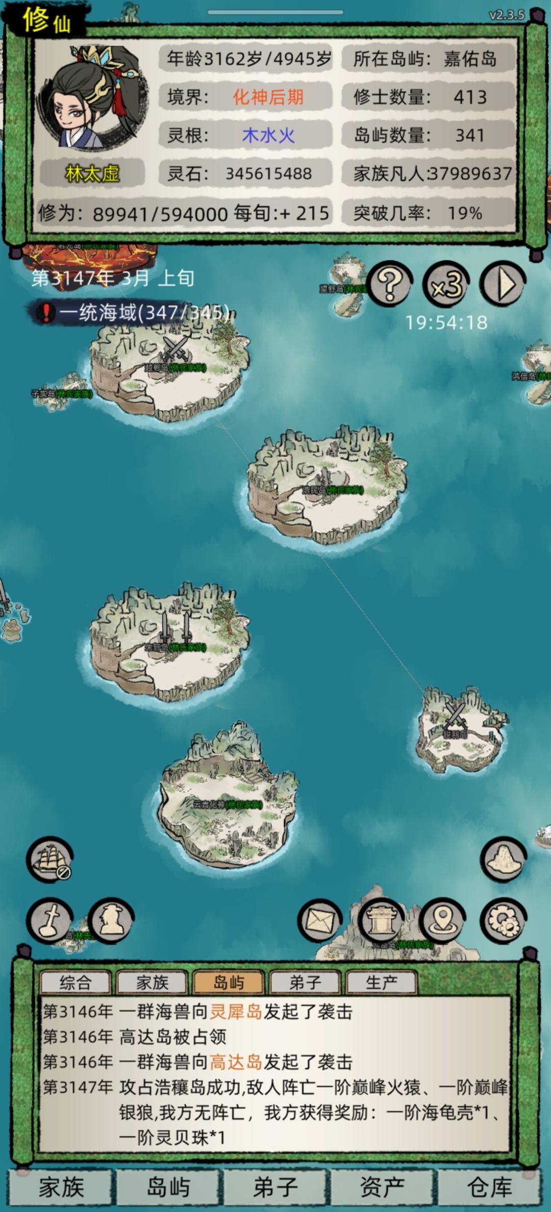 感觉修仙模式和普通模式一模一样,根本没人来打我,很简单就化神通关了,主角到了金丹就抢周围筑基和金丹的小岛,元婴就到全地图打一遍,购买化神丹,就四五个化神,等到了化神再打一遍,基本就通关了