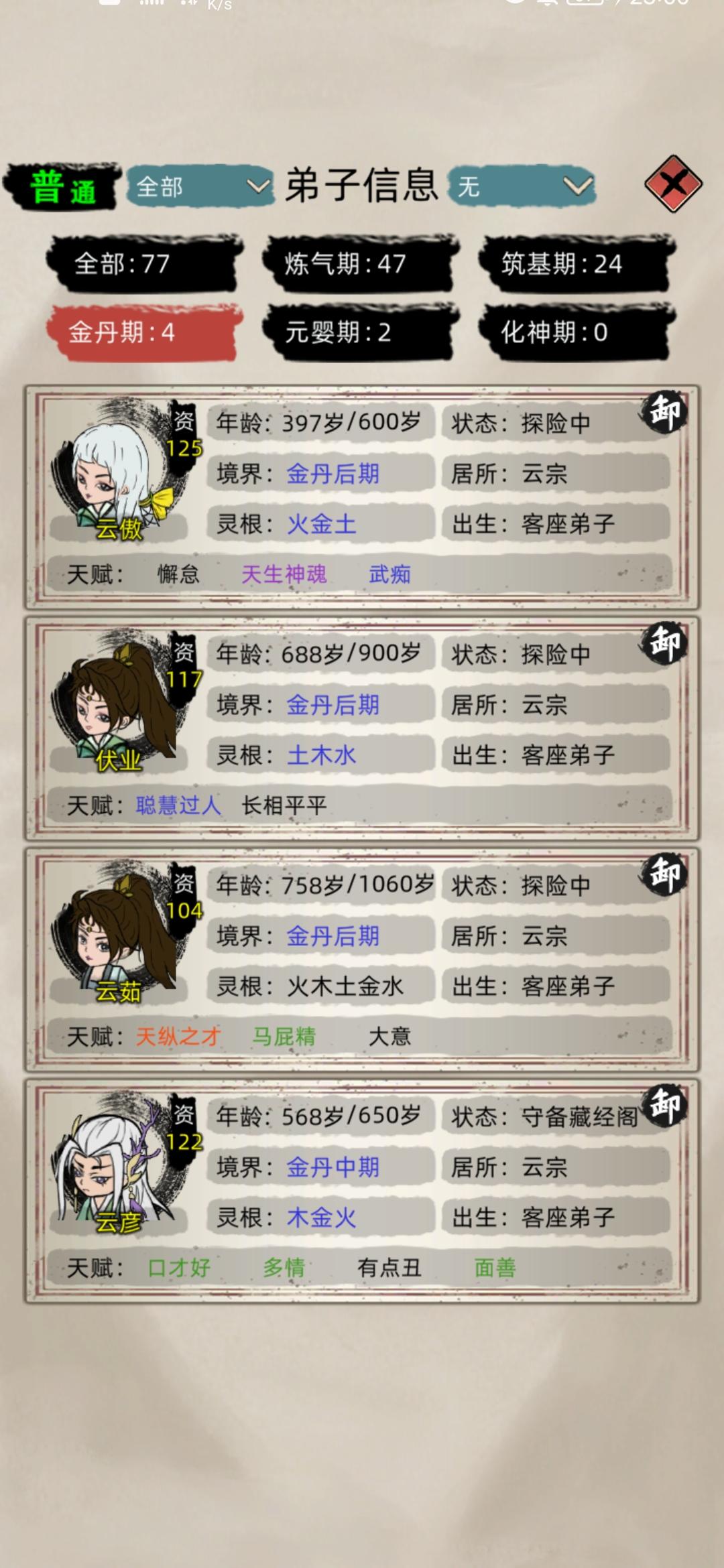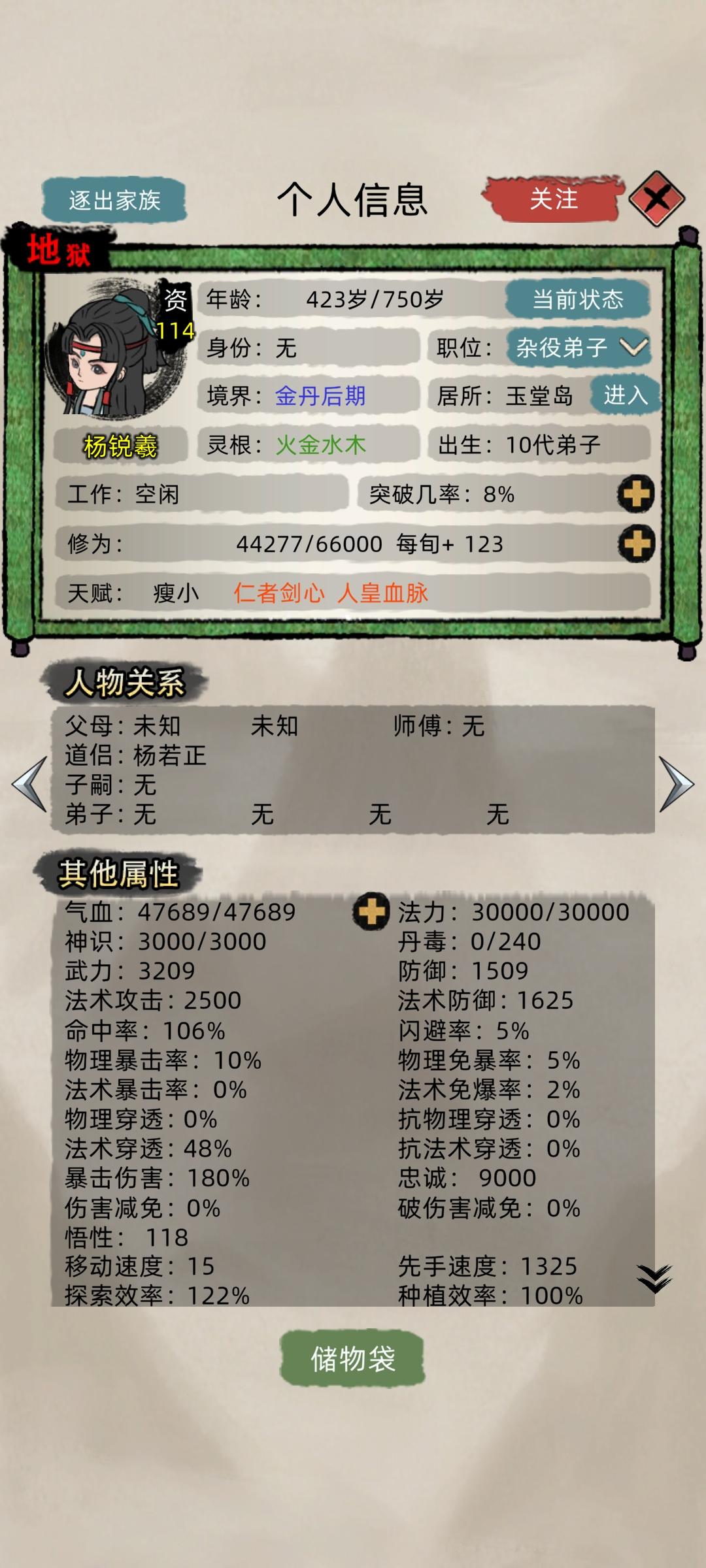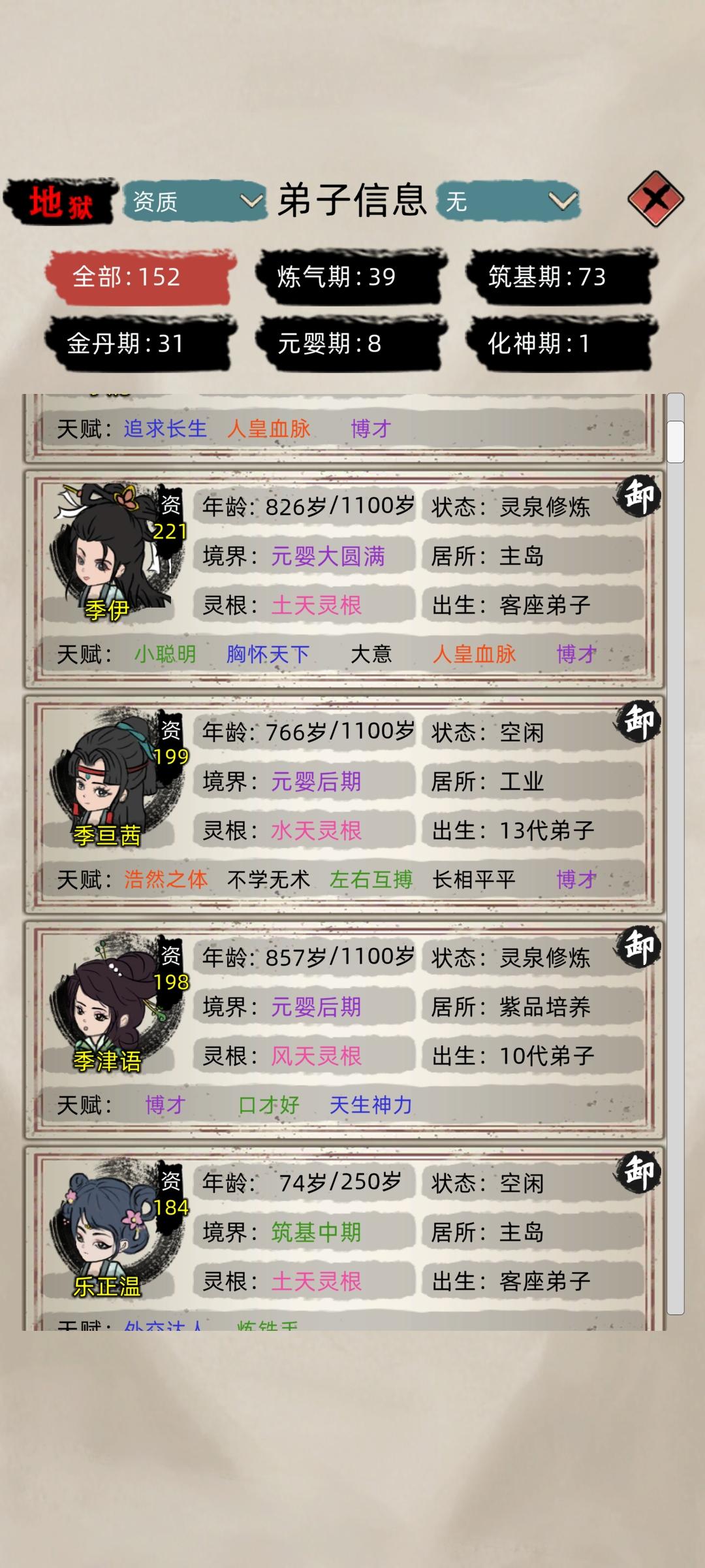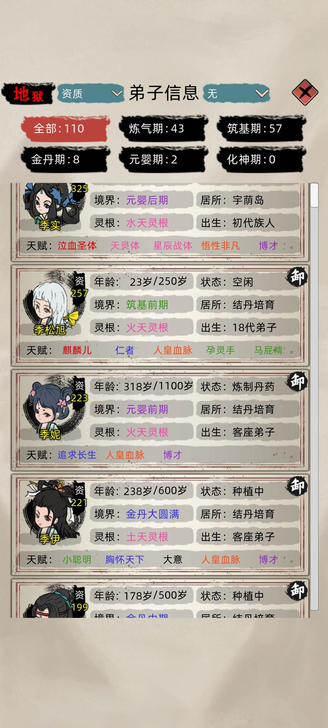 绷不住了,阴盛阳衰,一列高资质全女性,老祖至今为婚,好不容易蹲了个180男性的一看不知道什么时候悄悄结婚了,真难受,上把选男祖开局,后面屋子光棍,这把女祖开局,成桃花岛了,用九龙丹刷成员高资质都是大多女的,男的多少有点负面buff根本不敢配😅