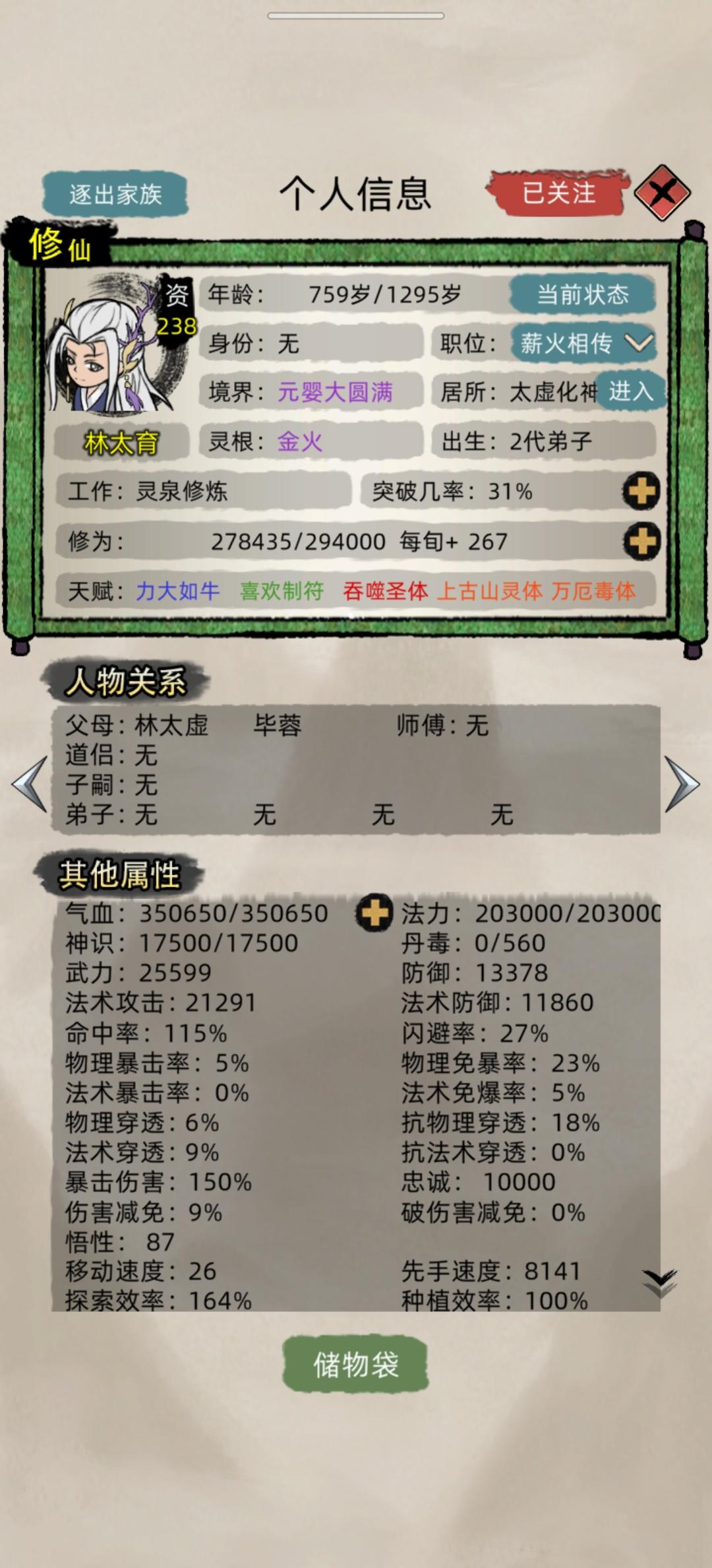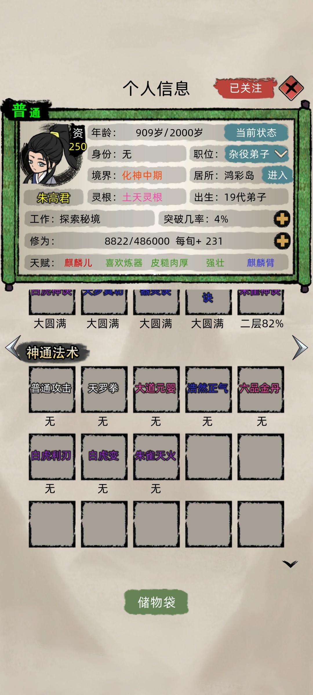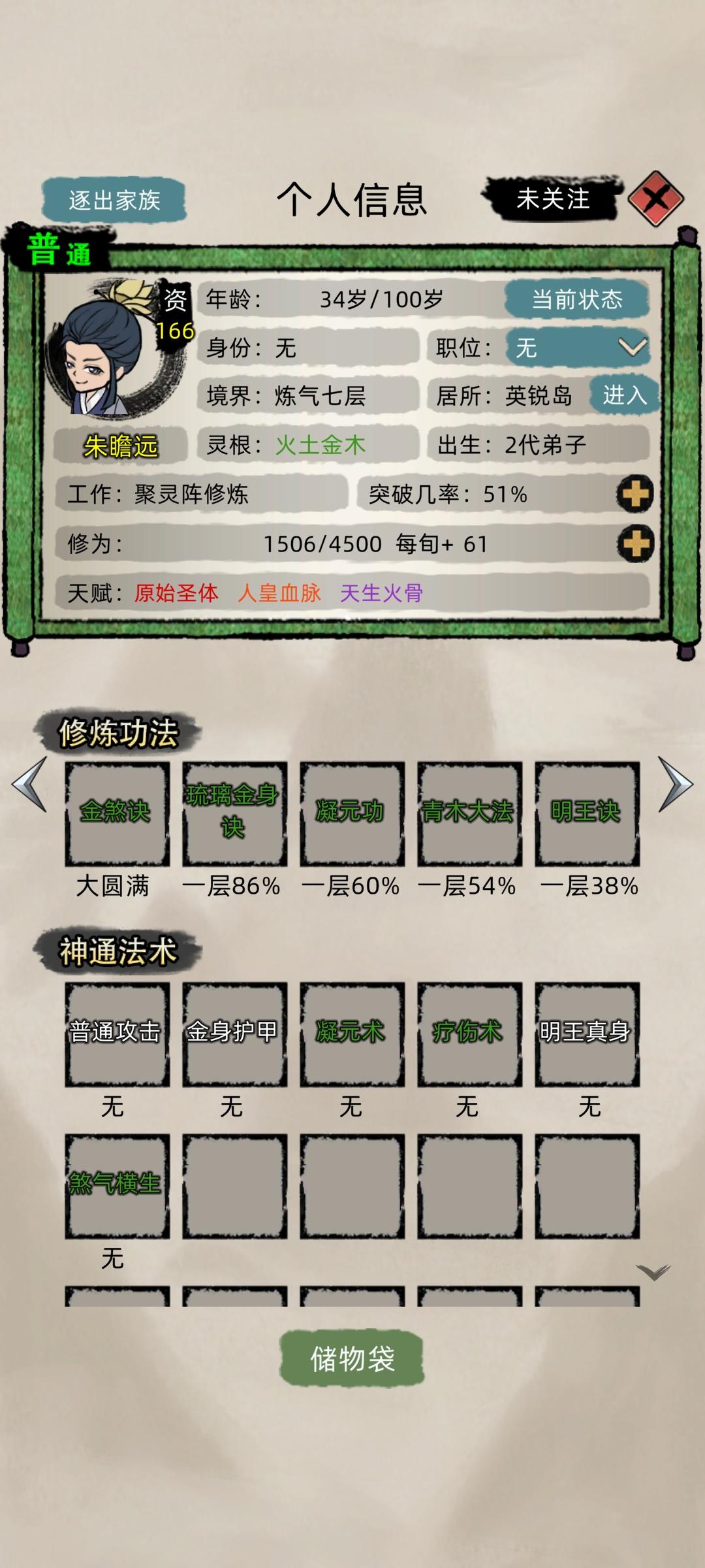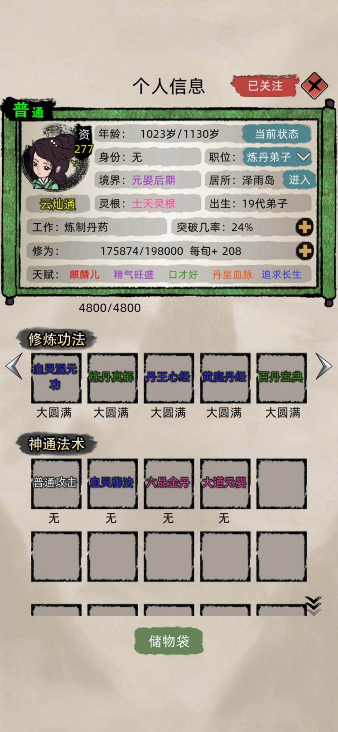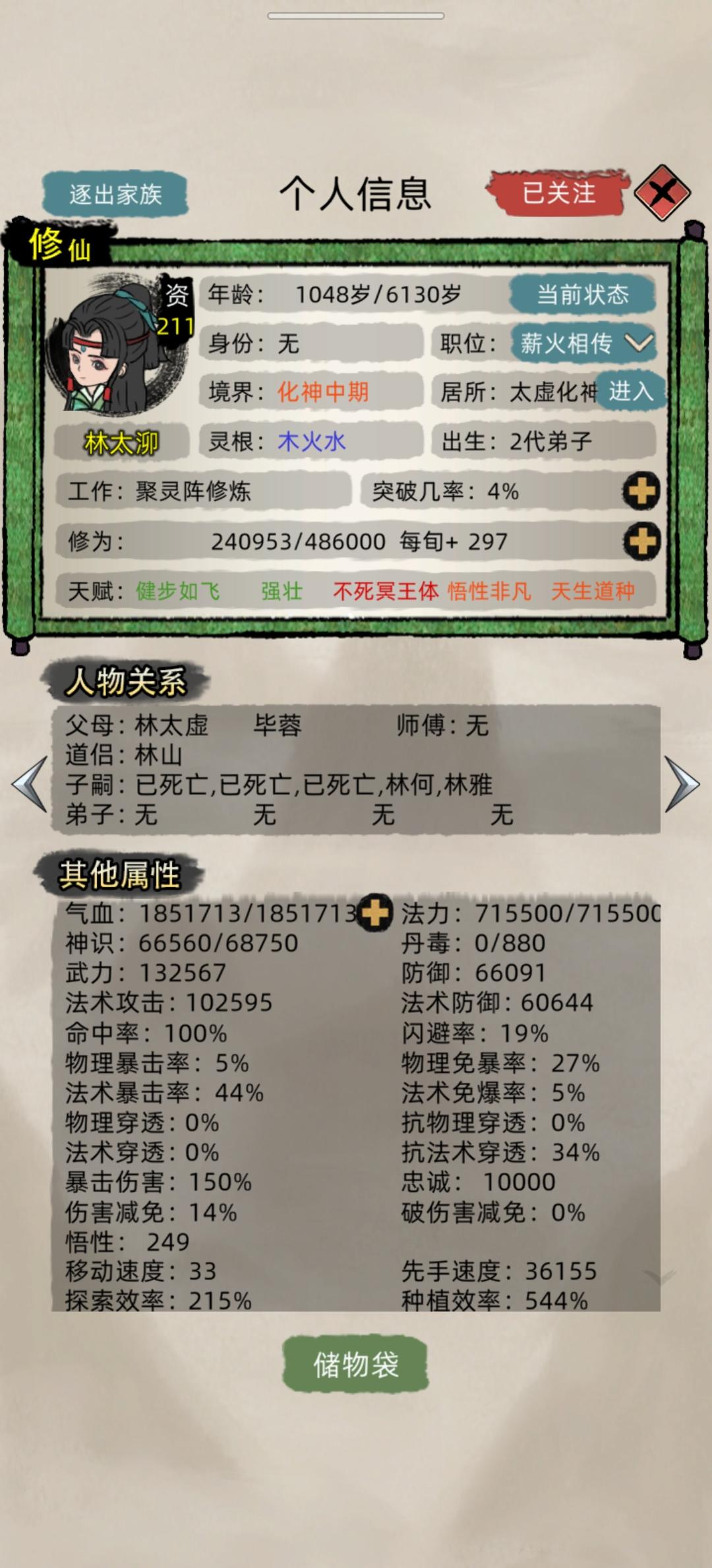 绷不住了,阴盛阳衰,一列高资质全女性,老祖至今为婚,好不容易蹲了个180男性的一看不知道什么时候悄悄结婚了,真难受,上把选男祖开局,后面屋子光棍,这把女祖开局,成桃花岛了,用九龙丹刷成员高资质都是大多女的,男的多少有点负面buff根本不敢配😅