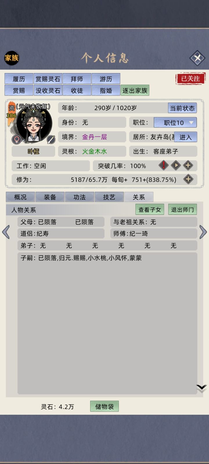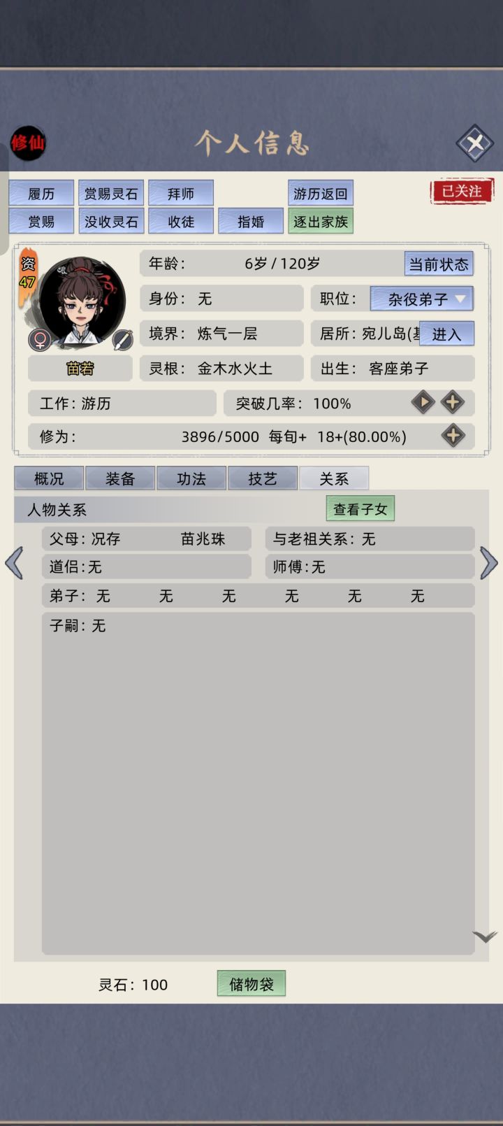 弟子不是多情呀,游历没写想知道,还是个二五仔,其实早就有了,因为这个一直没放。这个档拿来孕养的,好像不放也行,开始卡了